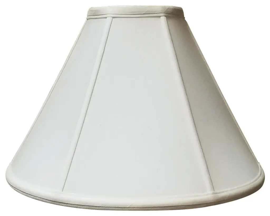 The Coolie Empire Lamp Shade gets its name from traditional Asian conical hats, which have a wide bottom and narrow top. You''ll find the Coolie style shades on large lamp bases to help create contrast and balance. This shade comes in a variety of fabrics and color options, and is perfect for creating a modern, contemporary look. The Coolie Empire Lamp Shade is part of the Royal Designs, Inc. Timeless™ Basic Shade Collection. Royal Designs has been in the lamp shade business since 1993 with our multiple shade lines that exemplify handcrafted quality and value. Height is measured by slant height from top to bottom of the lampshades"™ front face. Measurements listed as (TOP x BOTTOM x HEIGHT). Please measure your existing shade--a replacement harp may be needed for a proper fit or additional adjustment if changing height of shade. Exterior Fabric: Hand Tailored Silk-Type Shantung (except Linen, Mouton, Burlap & Faux Rawhide fabrics) Interior Fabric: Off-White Softback Lining (Black, Burlap & Faux Rawhide fabrics have gold lining) Washer: Standard brass-finish spider fitter, use a finial to fasten shade. (Shades with 9"+ top diameter have a V-Notch fitter for use with a 6" or 8" reflector bowl)Trim: Top and bottom trim (single or double) with vertical piping Frame: Heavy grade rust resistant metal frame Bulb: Suggested maximum wattage is 150-watt for most sizesHeight is measured by slant height from top to bottom of the lampshadesfront facePlease measure your existing shade--a replacement harp may be needed for a proper fit or additional adjustment if changing height of shade.