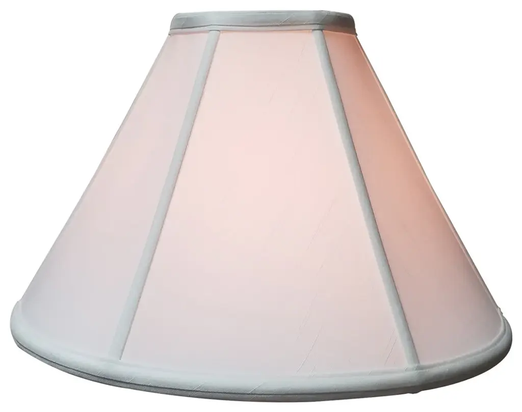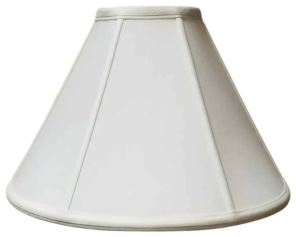 The Coolie Empire Lamp Shade gets its name from traditional Asian conical hats, which have a wide bottom and narrow top. You''ll find the Coolie style shades on large lamp bases to help create contrast and balance. This shade comes in a variety of fabrics and color options, and is perfect for creating a modern, contemporary look. The Coolie Empire Lamp Shade is part of the Royal Designs, Inc. Timeless™ Basic Shade Collection. Royal Designs has been in the lamp shade business since 1993 with our multiple shade lines that exemplify handcrafted quality and value. Height is measured by slant height from top to bottom of the lampshades"™ front face. Measurements listed as (TOP x BOTTOM x HEIGHT). Please measure your existing shade--a replacement harp may be needed for a proper fit or additional adjustment if changing height of shade. Exterior Fabric: Hand Tailored Silk-Type Shantung (except Linen, Mouton, Burlap & Faux Rawhide fabrics) Interior Fabric: Off-White Softback Lining (Black, Burlap & Faux Rawhide fabrics have gold lining) Washer: Standard brass-finish spider fitter, use a finial to fasten shade. (Shades with 9"+ top diameter have a V-Notch fitter for use with a 6" or 8" reflector bowl)Trim: Top and bottom trim (single or double) with vertical piping Frame: Heavy grade rust resistant metal frame Bulb: Suggested maximum wattage is 150-watt for most sizesHeight is measured by slant height from top to bottom of the lampshadesfront facePlease measure your existing shade--a replacement harp may be needed for a proper fit or additional adjustment if changing height of shade.