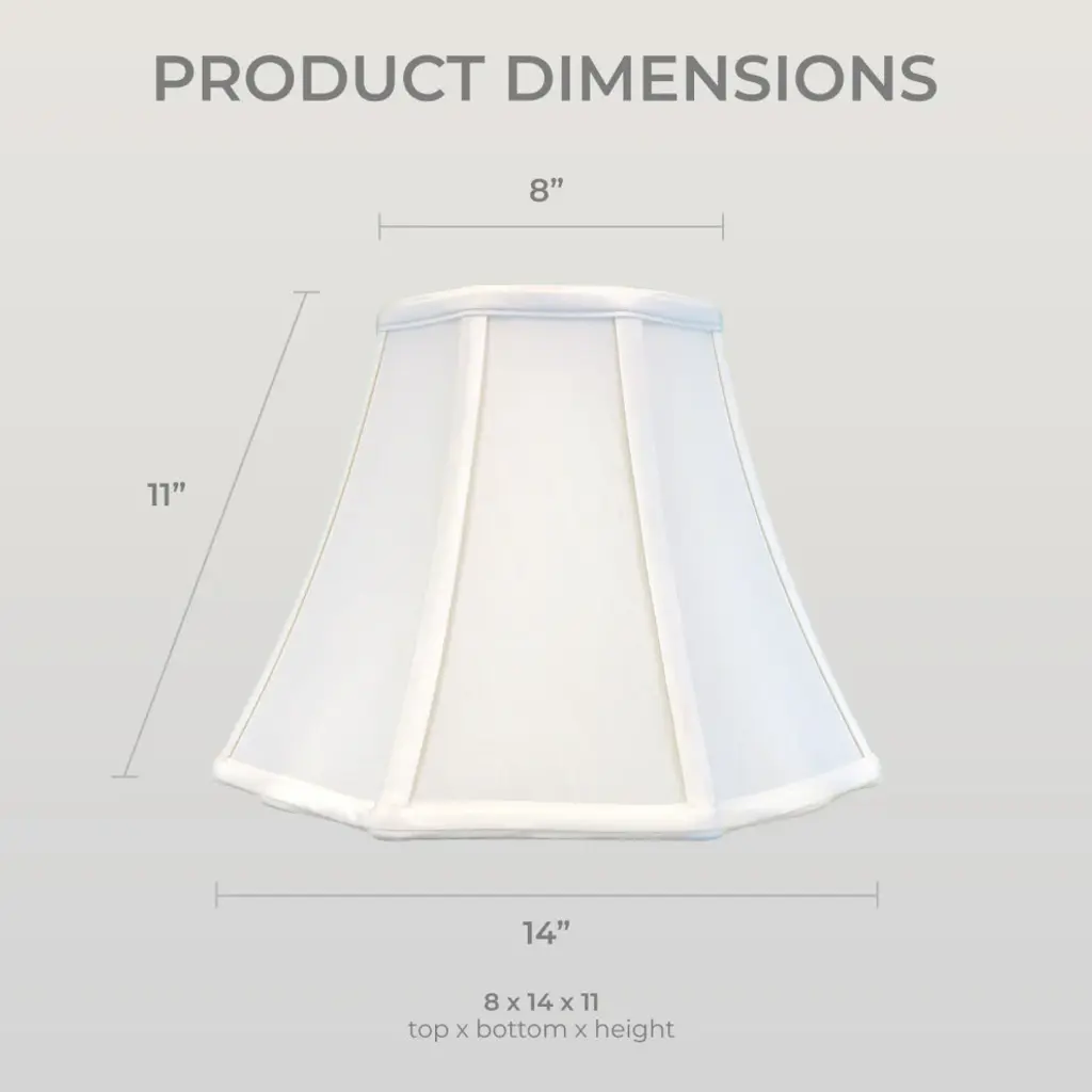 The Flare Corner Basic Lamp Shade is part of the Royal Designs, Inc. Timeless Basic Shade Collection and is a traditional yet stunning way to finish the look of your lamp. Our fancy lampshade makes a subtle statement and will turn your floor lamp or table lamp into a talking piece. We have decades of experience in the business of lampshades and we''re proud to offer multiple product lines that exemplify handcrafted quality and value. Be sure to browse our vast collection of shades in a wide variety of distinctive shapes that will add a new level of sophistication to your lighting and home decor.Height is measured on the slant from the top to the bottom of the lamp shade''s front face.DIMENSION: Our traditional basic corner scalloped lamp shade measures 6.5" x 12" x 9.25" (Top Diameter x Bottom Diameter x Slant Height)DIMENSION: Our traditional basic corner scalloped lamp shade measures 8" x 14" x 11" (Top Diameter x Bottom Diameter x Slant Height)DIMENSION: Our traditional basic corner scalloped lamp shade measures 9" x 16" x 12" (Top Diameter x Bottom Diameter x Slant Height)DIMENSION: Our traditional basic corner scalloped lamp shade measures 10" x 18" x 13" (Top Diameter x Bottom Diameter x Slant Height)MATERIALS: Our classic lampshade is made from premium silk-type shantung fabric and sturdy off-white styrene lining.EASY TO USE: The standard spider fitter works with most lamps and is held in place by any final or cap.TRADITIONAL DESIGN: Works perfectly with floor lamps or tall table lamps with a small to medium base. Our shade will also fit in beautifully in transitional and modern home decors.APPLICATION: Use our lamp shade for table lamps, accent lamps, vintage lamps, and even candlestick lamps! The timeless design is great for any room.Specification:Brand: Royal Designs, Inc.Type: Scalloped Lamp ShadeMaterial: FabricShape: ScallopedFinish: Antique
