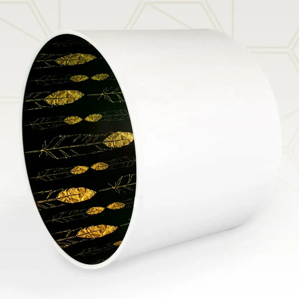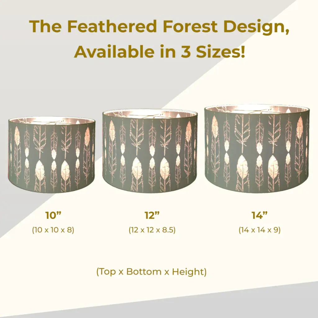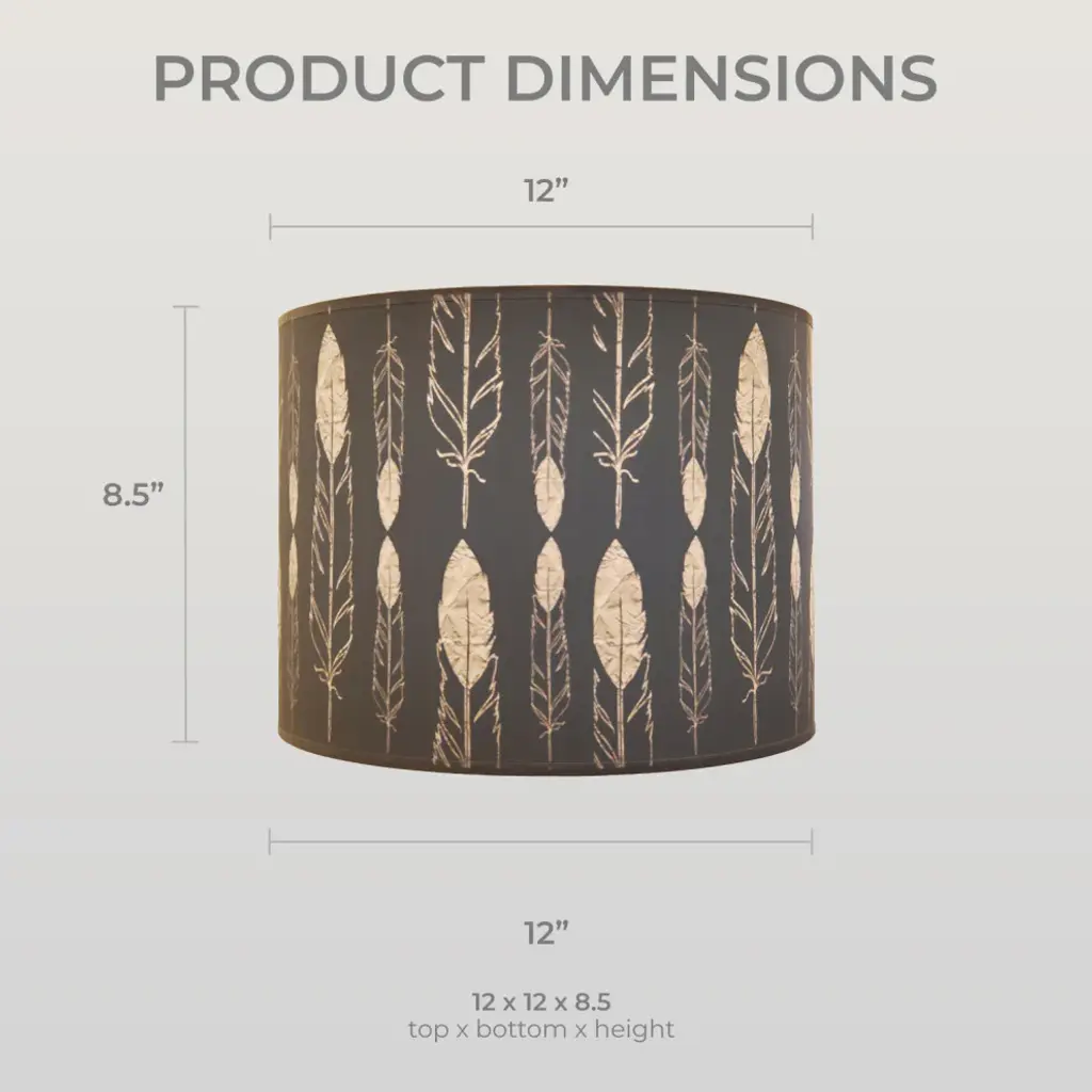 SHAPE and DIMENSIONS: This shallow drum hardback shade is measured as (Top Diameter x Bottom Diameter x Slant Height) and comes in the following sizes:10 x 10 x 812 x 12 x 8.514 x 14 x 9SHINE-THROUGH DESIGN: The understated white exterior shows the design of the interior lining when lit, offering a unique silhouette effect that is sure to amaze!WASHER: Standard (0.5-inch recess) brass-finish spider fitter w/ trademark stamping. (Shades with 9-inch+ top diameter have a V-Notch fitter for use with a 6-inch or 8-inch reflector bowl)FRAME: Our heavy-grade rust-resistant metal frame is thicker than typical lampshade frames, giving it a superior structure that will help it last for years.QUALITY MATTERS: This shade design is printed on high-quality hardback polystyrene material at a state-of-the-art printing facility. Made in the U.S.A.