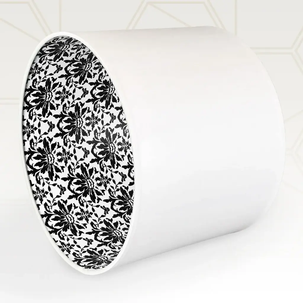 SHAPE and DIMENSIONS: This shallow drum hardback shade is measured as (Top Diameter x Bottom Diameter x Slant Height) and comes in the following sizes:10 x 10 x 812 x 12 x 8.514 x 14 x 9SHINE-THROUGH DESIGN: The understated white exterior shows the design of the interior lining when lit, offering a unique silhouette effect that is sure to amaze!WASHER: Standard (0.5-inch recess) brass-finish spider fitter w/ trademark stamping. (Shades with 9-inch+ top diameter have a V-Notch fitter for use with a 6-inch or 8-inch reflector bowl)FRAME: Our heavy-grade rust-resistant metal frame is thicker than typical lampshade frames, giving it a superior structure that will help it last for years.QUALITY MATTERS: This shade design is printed on high-quality hardback polystyrene material at a state-of-the-art printing facility. Made in the U.S.A.