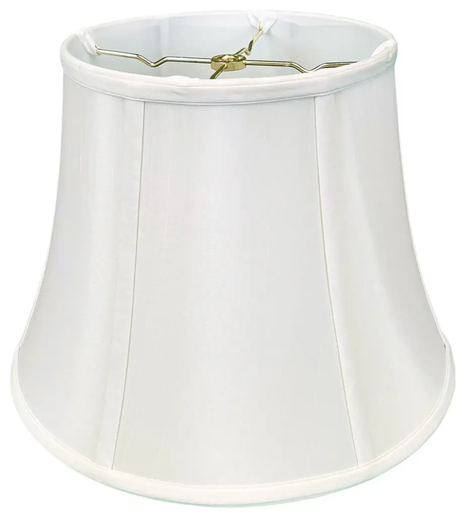 This Modified Bell Basic Lampshade is a part of Royal Designs, Inc. Timeless Basic Shade Collection and is perfect for anyone who is looking for a traditional yet stunning lampshade. Royal Designs has been in the lampshade business since 1993 with their multiple shade lines that exemplify handcrafted quality and value. Exterior Fabric: Hand Tailored Silk-Type Shantung (except Linen, Mouton, Burlap & Faux Rawhide fabrics) Interior Fabric: Off-White Softback Lining (Black, Burlap & Faux Rawhide fabrics have gold lining) Washer: Standard brass-finish spider fitter, use a finial to fasten shade. (Shades with 9"+ top diameter have a V-Notch fitter for use with a 6" or 8" reflector bowl)Trim: Top and bottom trim (single or double) with vertical piping Frame: Heavy grade rust resistant metal frame Bulb: Suggested maximum wattage is 150-watt for most sizesHeight is measured by slant height from top to bottom of the lampshades front facePlease measure your existing shade--a replacement harp may be needed for a proper fit or additional adjustment if changing height of shade.