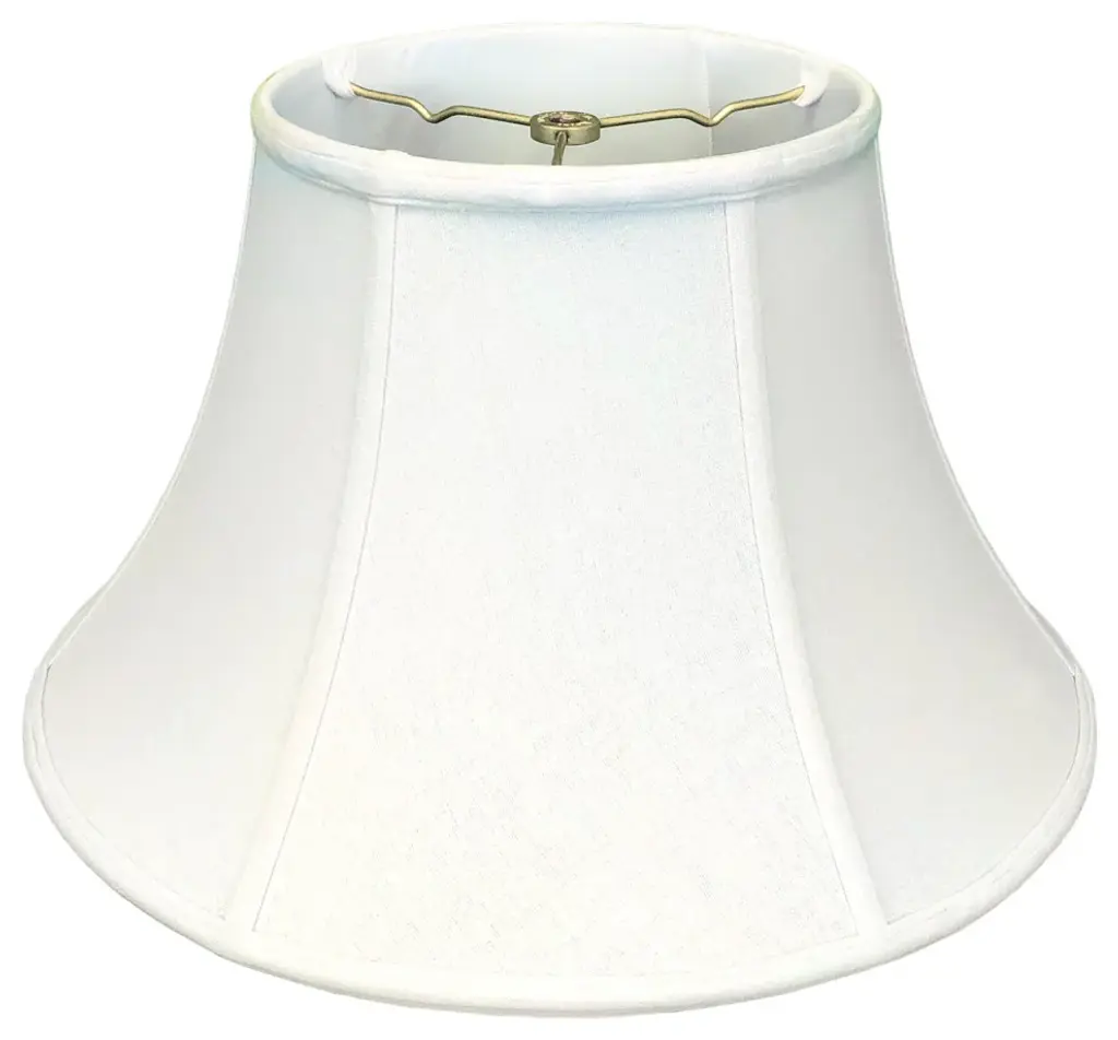 This Modified Bell Basic Lampshade is a part of Royal Designs, Inc. Timeless Basic Shade Collection and is perfect for anyone who is looking for a traditional yet stunning lampshade. Royal Designs has been in the lampshade business since 1993 with their multiple shade lines that exemplify handcrafted quality and value. Exterior Fabric: Hand Tailored Silk-Type Shantung (except Linen, Mouton, Burlap & Faux Rawhide fabrics) Interior Fabric: Off-White Softback Lining (Black, Burlap & Faux Rawhide fabrics have gold lining) Washer: Standard brass-finish spider fitter, use a finial to fasten shade. (Shades with 9"+ top diameter have a V-Notch fitter for use with a 6" or 8" reflector bowl)Trim: Top and bottom trim (single or double) with vertical piping Frame: Heavy grade rust resistant metal frame Bulb: Suggested maximum wattage is 150-watt for most sizesHeight is measured by slant height from top to bottom of the lampshades front facePlease measure your existing shade--a replacement harp may be needed for a proper fit or additional adjustment if changing height of shade.