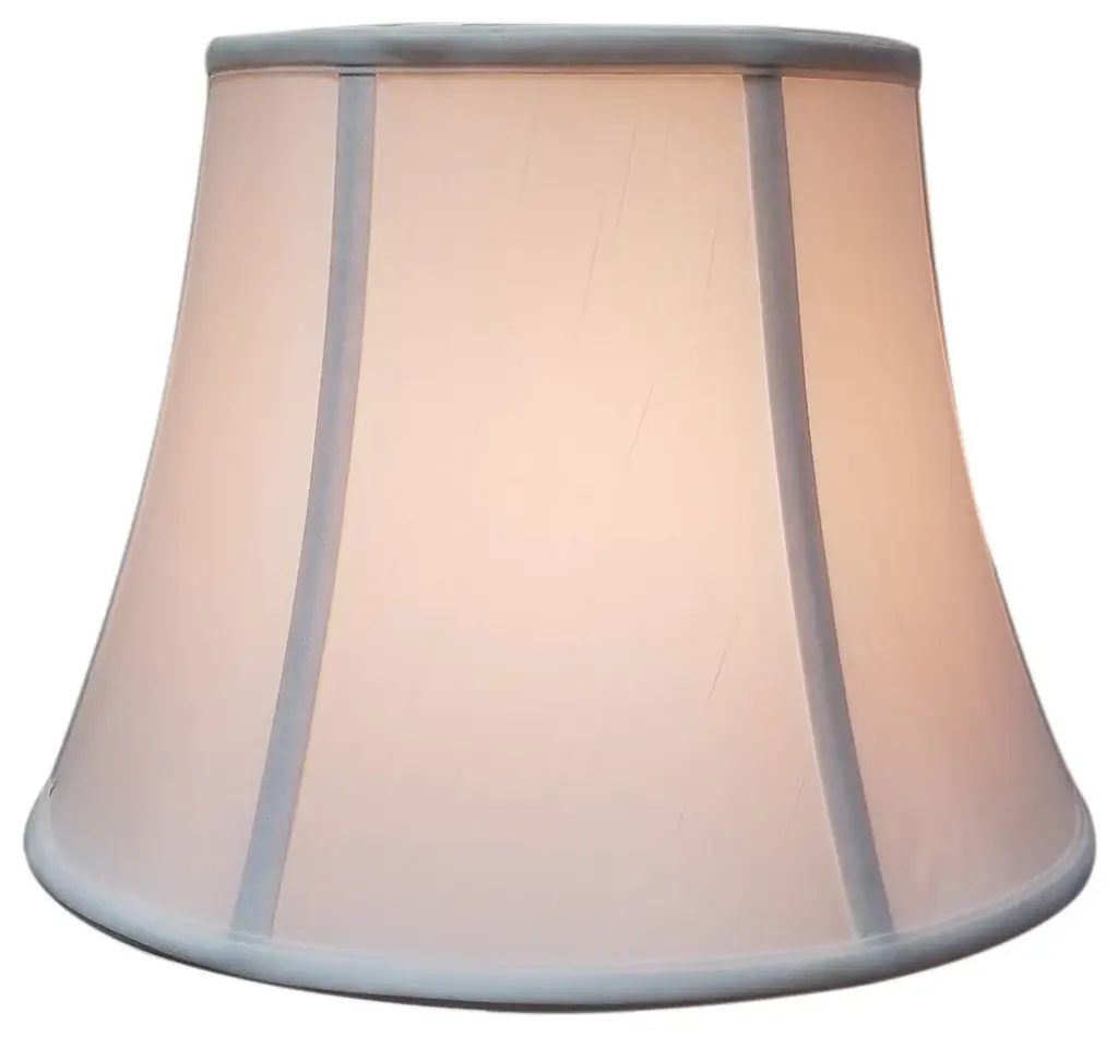 This Modified Bell Basic Lampshade is a part of Royal Designs, Inc. Timeless Basic Shade Collection and is perfect for anyone who is looking for a traditional yet stunning lampshade. Royal Designs has been in the lampshade business since 1993 with their multiple shade lines that exemplify handcrafted quality and value. Exterior Fabric: Hand Tailored Silk-Type Shantung (except Linen, Mouton, Burlap & Faux Rawhide fabrics) Interior Fabric: Off-White Softback Lining (Black, Burlap & Faux Rawhide fabrics have gold lining) Washer: Standard brass-finish spider fitter, use a finial to fasten shade. (Shades with 9"+ top diameter have a V-Notch fitter for use with a 6" or 8" reflector bowl)Trim: Top and bottom trim (single or double) with vertical piping Frame: Heavy grade rust resistant metal frame Bulb: Suggested maximum wattage is 150-watt for most sizesHeight is measured by slant height from top to bottom of the lampshades front facePlease measure your existing shade--a replacement harp may be needed for a proper fit or additional adjustment if changing height of shade.