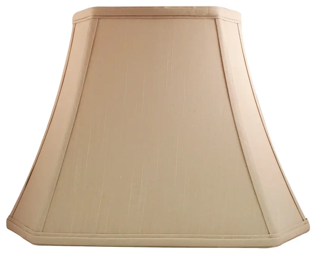 The Rectangle Cut Corner Basic Lamp Shade is part of the Royal Designs, Inc. Timeless Basic Shade Collection and is a traditional yet stunning way to finish the look of your lamp. Our fancy lampshade makes a subtle statement and will turn your floor lamp or table lamp into a talking piece. We have decades of experience in the business of lampshades and we''re proud to offer multiple product lines that exemplify handcrafted quality and value. Be sure to browse our vast collection of shades in a wide variety of distinctive shapes that will add a new level of sophistication to your lighting and home decor.Height is measured on the slant from the top to the bottom of the lamp shade''s front face.DIMENSION: Our traditional basic corner cut lamp shade measures (5 x 6.5)" x (8 x 12)" x 10" (Top Diameter x Bottom Diameter x Slant Height)DIMENSION: Our traditional basic corner cut lamp shade measures (6 x 8)" x (9 x 14)" x 10.5" (Top Diameter x Bottom Diameter x Slant Height)DIMENSION: Our traditional basic corner cut lamp shade measures (7 x 9)" x (10.25 x 16)" x 12.25" (Top Diameter x Bottom Diameter x Slant Height)DIMENSION: Our traditional basic corner cut lamp shade measures (7 x 10)" x (12.25 x 18)" x 13.25" (Top Diameter x Bottom Diameter x Slant Height)MATERIALS: Our classic lampshade is made from premium silk-type shantung fabric and sturdy off-white styrene lining.EASY TO USE: The standard spider fitter works with most lamps and is held in place by any final or cap.TRADITIONAL DESIGN: Works perfectly with floor lamps or tall table lamps with a small to medium base. Our shade will also fit in beautifully in transitional and modern home decors.APPLICATION: Use our lamp shade for table lamps, accent lamps, vintage lamps, and even candlestick lamps! The timeless design is great for any room.Specification:Brand: Royal Designs, Inc.Type: Rectangle Lamp ShadeMaterial: FabricShape: Rectangle