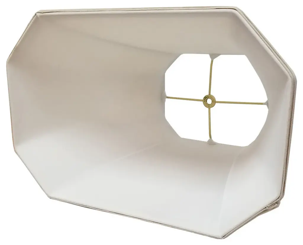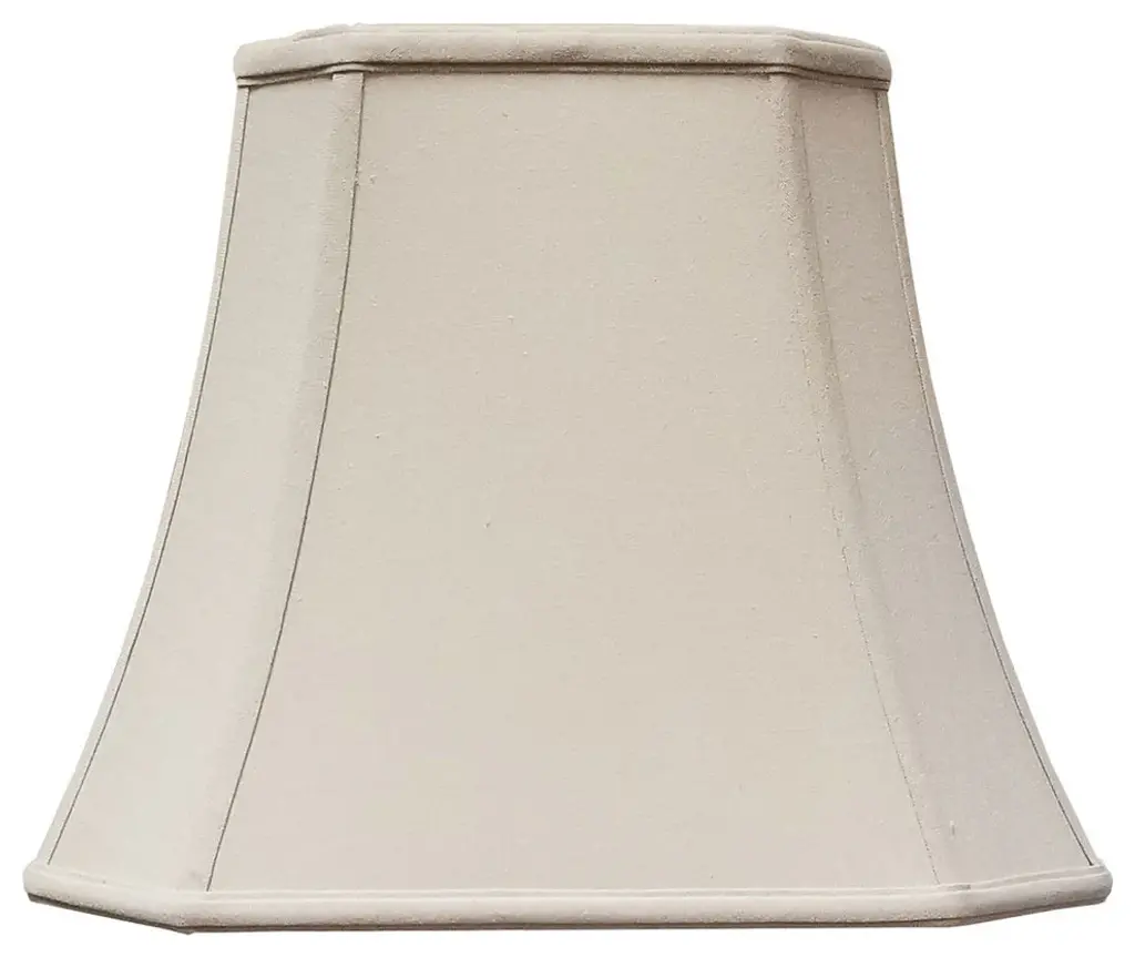 The Rectangle Cut Corner Lamp Shade flares slightly towards the bottom, showcasing beautiful cut corners and clean lines. Perfect for narrow tables where you need light, but don''t have room for a round shade. This shade comes in a variety of fabrics and color options, and is versatile for use in traditional, transitional and modern homes. The Rectangle Cut Corner Lamp Shade is part of the Royal Designs, Inc. Timeless™ Basic Shade Collection. Royal Designs has been in the lamp shade business since 1993 with our multiple shade lines that exemplify handcrafted quality and value. Height is measured by slant height from top to bottom of the lampshades"™ front face. Measurements listed as (TOP x BOTTOM x HEIGHT). Please measure your existing shade--a replacement harp may be needed for a proper fit or additional adjustment if changing height of shade. Exterior Fabric: Hand Tailored Silk-Type Shantung (except Linen, Mouton, Burlap & Faux Rawhide fabrics) Interior Fabric: Off-White Softback Lining (Black, Burlap & Faux Rawhide fabrics have gold lining) Washer: Standard brass-finish spider fitter, use a finial to fasten shade.Trim: Top and bottom trim (single or double) with vertical piping Frame: Heavy grade rust resistant metal frame Bulb: Suggested maximum wattage is 150-watt for most sizesHeight is measured by slant height from top to bottom of the lampshades front facePlease measure your existing shade--a replacement harp may be needed for a proper fit or additional adjustment if changing height of shade