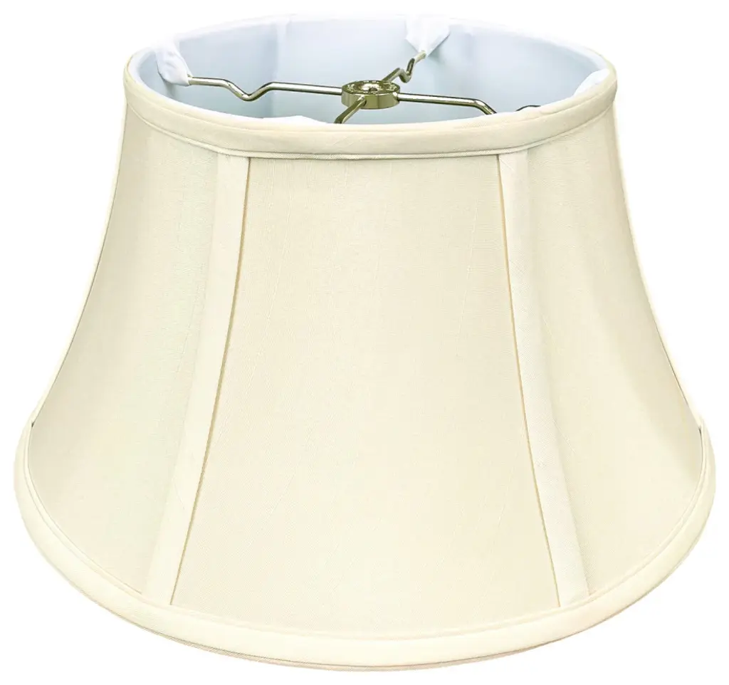 The Shallow Bell Lamp Shade is the condensed version of the traditional bell shape. The dimensions of this shade are meant to counter-balance lamps with a more voluminous base. This shade also comes in a wall shade option for use in tight spaces where a narrow width is required. With a variety of fabrics and color options, it is versatile enough for use in traditional, transitional and modern homes. The Shallow Bell Lamp Shade is part of the Royal Designs, Inc. Timeless™ Basic Shade Collection. Royal Designs has been in the lamp shade business since 1993 with our multiple shade lines that exemplify handcrafted quality and value. Height is measured by slant height from top to bottom of the lampshades"™ front face. Measurements listed as (TOP x BOTTOM x HEIGHT). Please measure your existing shade--a replacement harp may be needed for a proper fit or additional adjustment if changing height of shade. Exterior Fabric: Hand Tailored Silk-Type Shantung (except Linen, Mouton, Burlap & Faux Rawhide fabrics) Interior Fabric: Off-White Softback Lining (Black, Burlap & Faux Rawhide fabrics have gold lining) Washer: Standard brass-finish spider fitter, use a finial to fasten shade. (All shades with 9 in + top diameter have a V-Notch fitter for use on a 6 in or 8 in reflector bowl) Trim: Top and bottom trim (single or double) with vertical piping Frame: Heavy grade rust resistant metal frame Bulb: Suggested maximum wattage is 150-watt for most sizesHeight is measured by slant height from top to bottom of the lampshades front facePlease measure your existing shade--a replacement harp may be needed for a proper fit or additional adjustment if changing height of shade