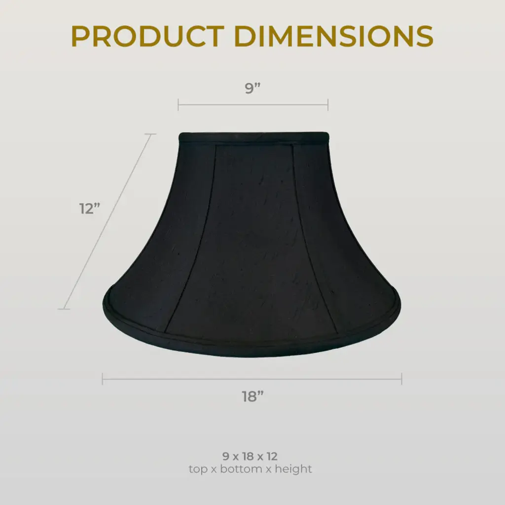 This Shallow Bell Basic Lampshade is a part of Royal Designs, Inc.?Timeless Basic Shade Collection?and is perfect for anyone who is looking for a traditional yet stunning lampshade. Royal Designs has been in the lampshade business since 1993 with their multiple shade lines that exemplify handcrafted quality and value. Exterior Fabric: Hand Tailored Silk-Type Shantung (except Linen, Mouton, Burlap & Faux Rawhide fabrics) Interior Fabric: Off-White Softback Lining (Black, Burlap & Faux Rawhide fabrics have gold lining) Washer: Standard brass-finish spider fitter, use a finial to fasten shade. (All shades with 9 in + top diameter have a V-Notch fitter for use on a 6 in or 8 in reflector bowl) Trim: Top and bottom trim (single or double) with vertical piping Frame: Heavy grade rust resistant metal frame Bulb: Suggested maximum wattage is 150-watt for most sizesHeight is measured by slant height from top to bottom of the lampshades front facePlease measure your existing shade--a replacement harp may be needed for a proper fit or additional adjustment if changing height of shade