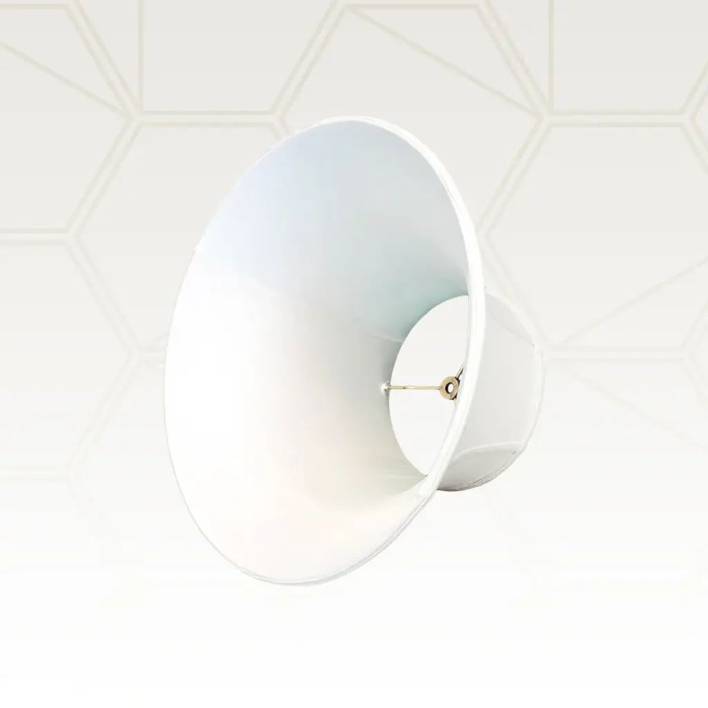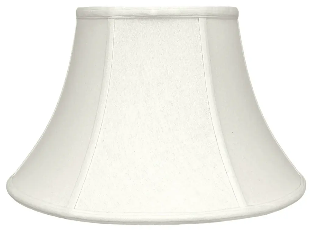 The Shallow Bell Lamp Shade is the condensed version of the traditional bell shape. The dimensions of this shade are meant to counter-balance lamps with a more voluminous base. This shade also comes in a wall shade option for use in tight spaces where a narrow width is required. With a variety of fabrics and color options, it is versatile enough for use in traditional, transitional and modern homes. The Shallow Bell Lamp Shade is part of the Royal Designs, Inc. Timeless™ Basic Shade Collection. Royal Designs has been in the lamp shade business since 1993 with our multiple shade lines that exemplify handcrafted quality and value. Height is measured by slant height from top to bottom of the lampshades"™ front face. Measurements listed as (TOP x BOTTOM x HEIGHT). Please measure your existing shade--a replacement harp may be needed for a proper fit or additional adjustment if changing height of shade. Exterior Fabric: Hand Tailored Silk-Type Shantung (except Linen, Mouton, Burlap & Faux Rawhide fabrics) Interior Fabric: Off-White Softback Lining (Black, Burlap & Faux Rawhide fabrics have gold lining) Washer: Standard brass-finish spider fitter, use a finial to fasten shade. (All shades with 9 in + top diameter have a V-Notch fitter for use on a 6 in or 8 in reflector bowl) Trim: Top and bottom trim (single or double) with vertical piping Frame: Heavy grade rust resistant metal frame Bulb: Suggested maximum wattage is 150-watt for most sizesHeight is measured by slant height from top to bottom of the lampshades front facePlease measure your existing shade--a replacement harp may be needed for a proper fit or additional adjustment if changing height of shade