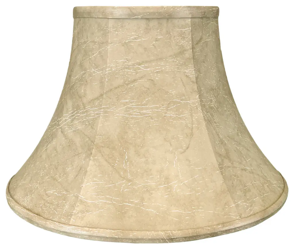 This Shallow Bell Basic Lampshade is a part of Royal Designs, Inc. Timeless Basic Shade Collection and is perfect for anyone who is looking for a traditional yet stunning lampshade. Royal Designs has been in the lampshade business since 1993 with their multiple shade lines that exemplify handcrafted quality and value. Exterior Fabric: Hand Tailored Silk-Type Shantung (except Linen, Mouton, Burlap & Faux Rawhide fabrics) Interior Fabric: Off-White Softback Lining (Black, Burlap & Faux Rawhide fabrics have gold lining) Washer: Standard brass-finish spider fitter, use a finial to fasten shade. (All shades with 9 in + top diameter have a V-Notch fitter for use on a 6 in or 8 in reflector bowl) Trim: Top and bottom trim (single or double) with vertical piping Frame: Heavy grade rust resistant metal frame Bulb: Suggested maximum wattage is 150-watt for most sizesHeight is measured by slant height from top to bottom of the lampshades front facePlease measure your existing shade--a replacement harp may be needed for a proper fit or additional adjustment if changing height of shade