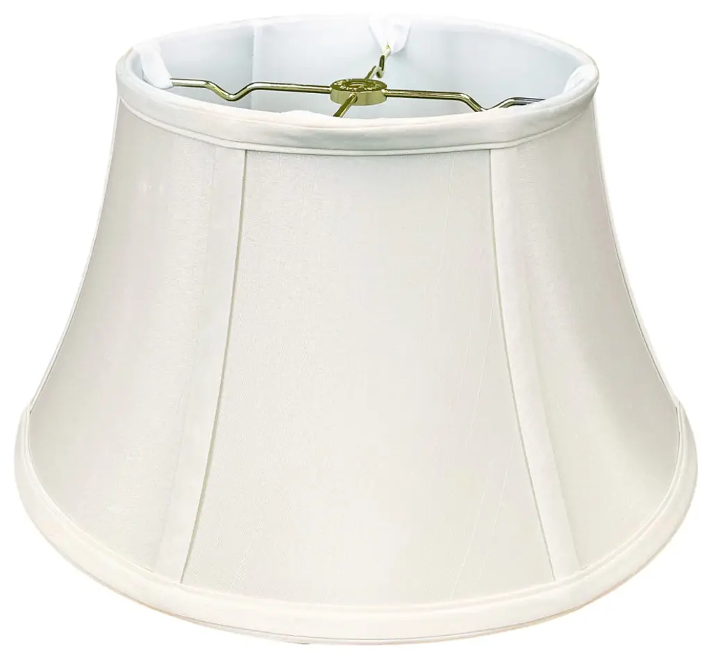 The Shallow Drum Bell Billiotte Lamp Shade is a fresh, modern take on the French Billiotte style. With its classic round shape and slightly flared bottom, this shade is made to accomodate candlestick lamps with multiple arms. This shade comes in a variety of fabrics and color options, and is versatile for use in traditional, transitional and modern homes. The Shallow Drum Bell Billiotte Lamp Shade is part of the Royal Designs, Inc. Timeless™ Basic Shade Collection. Royal Designs has been in the lamp shade business since 1993 with our multiple shade lines that exemplify handcrafted quality and value. Height is measured by slant height from top to bottom of the lampshades"™ front face. Measurements listed as (TOP x BOTTOM x HEIGHT). Please measure your existing shade--a replacement harp may be needed for a proper fit or additional adjustment if changing height of shade. Exterior Fabric: Hand Tailored Silk-Type Shantung (except Linen, Mouton, Burlap & Faux Rawhide fabrics) Interior Fabric: Off-White Softback Lining (Black, Burlap & Faux Rawhide fabrics have gold lining) Washer: Standard brass-finish spider fitter, use a finial to fasten shade. (All shades with 9 in + top diameter have a V-Notch fitter for use on a 6 in or 8 in reflector bowl) Trim: Top and bottom trim (single or double) with vertical piping Frame: Heavy grade rust resistant metal frame Bulb: Suggested maximum wattage is 150-watt for most sizesHeight is measured by slant height from top to bottom of the lampshades front facePlease measure your existing shade--a replacement harp may be needed for a proper fit or additional adjustment if changing height of shade