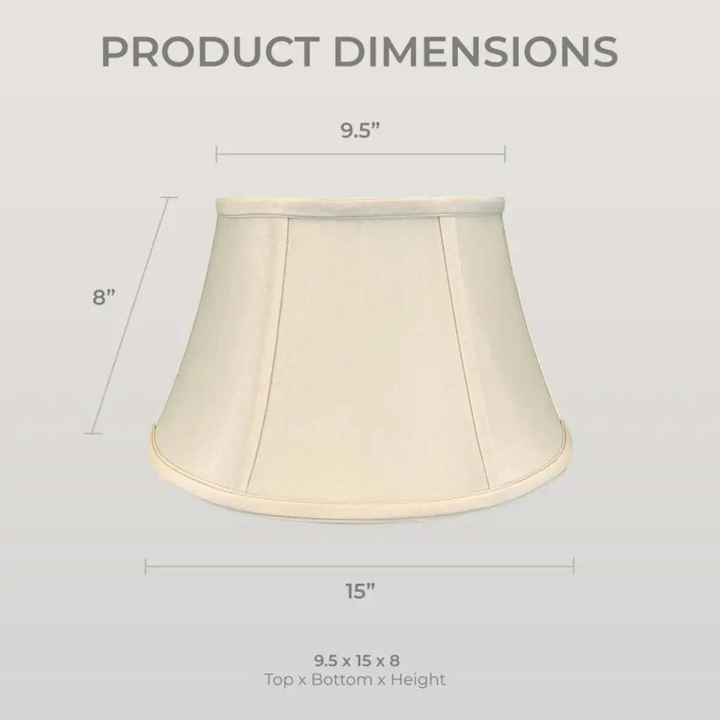 The Shallow Drum Bell Bouillotte Basic Lampshade is a fresh, modern take on the French Bouillotte style. With its classic round shape and slightly flared bottom, this shade is made to accommodate candlestick lamps with multiple arms. This shade comes in a variety of fabrics and color options and is versatile for use in traditional, transitional, and modern homes. The Shallow Drum Bell Bouillotte Lamp Shade is part of the Royal Designs, Inc. Timeless™ Basic Shade Collection. Royal Designs has been in the lampshade business since 1993 with our multiple shade lines that exemplify handcrafted quality and value. Height is measured by slant height from top to bottom of the lampshades"™ front face. Measurements listed as (Top Diameter x Bottom Diameter x Slant Height). Please measure your existing shade--a replacement harp may be needed for a proper fit or additional adjustment if changing the height of the shade.DIMENSION: Our traditional drum shade measures 8" x 12.5" x 7.5" (Top Diameter x Bottom Diamter x Slant Height)DIMENSION: Our traditional drum shade measures 9.5" x 15" x 8" (Top Diameter x Bottom Diamter x Slant Height)DIMENSION: Our traditional drum shade measures 11" x 17" x 10" (Top Diameter x Bottom Diamter x Slant Height)DIMENSION: Our traditional drum shade measures 13" x 19" x 11.25" (Top Diameter x Bottom Diamter x Slant Height)MATERIALS: Our classic lampshade is made from premium silk-type shantung fabric and sturdy off-white styrene lining.EASY TO USE: The standard spider fitter works with most lamps and is held in place by any final or cap.TRADITIONAL DESIGN: Works perfectly with floor lamps or tall table lamps with a small to medium base. Our shade will also fit in beautifully in transitional and modern home decors.APPLICATION: Use our lamp shade for table lamps, accent lamps, vintage lamps, and even candlestick lamps! The timeless design is great for any room.