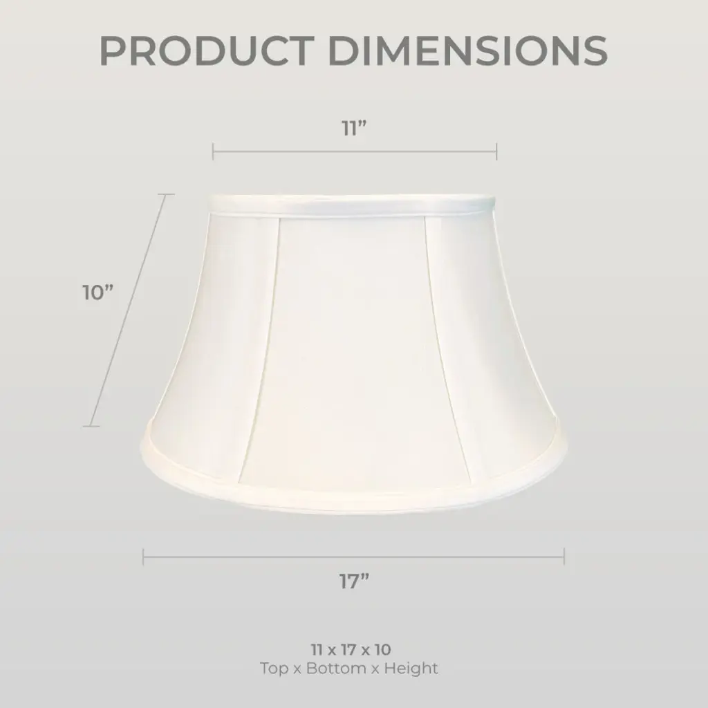The Shallow Drum Bell Bouillotte Basic Lampshade is a fresh, modern take on the French Bouillotte style. With its classic round shape and slightly flared bottom, this shade is made to accommodate candlestick lamps with multiple arms. This shade comes in a variety of fabrics and color options and is versatile for use in traditional, transitional, and modern homes. The Shallow Drum Bell Bouillotte Lamp Shade is part of the Royal Designs, Inc. Timeless™ Basic Shade Collection. Royal Designs has been in the lampshade business since 1993 with our multiple shade lines that exemplify handcrafted quality and value. Height is measured by slant height from top to bottom of the lampshades"™ front face. Measurements listed as (Top Diameter x Bottom Diameter x Slant Height). Please measure your existing shade--a replacement harp may be needed for a proper fit or additional adjustment if changing the height of the shade.DIMENSION: Our traditional drum shade measures 8" x 12.5" x 7.5" (Top Diameter x Bottom Diamter x Slant Height)DIMENSION: Our traditional drum shade measures 9.5" x 15" x 8" (Top Diameter x Bottom Diamter x Slant Height)DIMENSION: Our traditional drum shade measures 11" x 17" x 10" (Top Diameter x Bottom Diamter x Slant Height)DIMENSION: Our traditional drum shade measures 13" x 19" x 11.25" (Top Diameter x Bottom Diamter x Slant Height)MATERIALS: Our classic lampshade is made from premium silk-type shantung fabric and sturdy off-white styrene lining.EASY TO USE: The standard spider fitter works with most lamps and is held in place by any final or cap.TRADITIONAL DESIGN: Works perfectly with floor lamps or tall table lamps with a small to medium base. Our shade will also fit in beautifully in transitional and modern home decors.APPLICATION: Use our lamp shade for table lamps, accent lamps, vintage lamps, and even candlestick lamps! The timeless design is great for any room.
