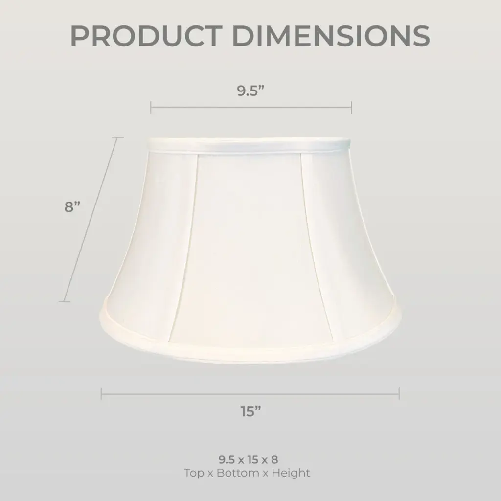 The Shallow Drum Bell Bouillotte Basic Lampshade is a fresh, modern take on the French Bouillotte style. With its classic round shape and slightly flared bottom, this shade is made to accommodate candlestick lamps with multiple arms. This shade comes in a variety of fabrics and color options and is versatile for use in traditional, transitional, and modern homes. The Shallow Drum Bell Bouillotte Lamp Shade is part of the Royal Designs, Inc. Timeless™ Basic Shade Collection. Royal Designs has been in the lampshade business since 1993 with our multiple shade lines that exemplify handcrafted quality and value. Height is measured by slant height from top to bottom of the lampshades"™ front face. Measurements listed as (Top Diameter x Bottom Diameter x Slant Height). Please measure your existing shade--a replacement harp may be needed for a proper fit or additional adjustment if changing the height of the shade.DIMENSION: Our traditional drum shade measures 8" x 12.5" x 7.5" (Top Diameter x Bottom Diamter x Slant Height)DIMENSION: Our traditional drum shade measures 9.5" x 15" x 8" (Top Diameter x Bottom Diamter x Slant Height)DIMENSION: Our traditional drum shade measures 11" x 17" x 10" (Top Diameter x Bottom Diamter x Slant Height)DIMENSION: Our traditional drum shade measures 13" x 19" x 11.25" (Top Diameter x Bottom Diamter x Slant Height)MATERIALS: Our classic lampshade is made from premium silk-type shantung fabric and sturdy off-white styrene lining.EASY TO USE: The standard spider fitter works with most lamps and is held in place by any final or cap.TRADITIONAL DESIGN: Works perfectly with floor lamps or tall table lamps with a small to medium base. Our shade will also fit in beautifully in transitional and modern home decors.APPLICATION: Use our lamp shade for table lamps, accent lamps, vintage lamps, and even candlestick lamps! The timeless design is great for any room.