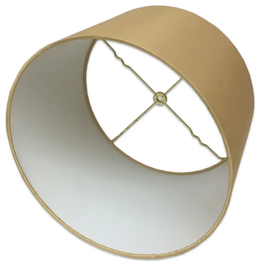 Royal Designs has been in the lampshade business since 1993 with their multiple shade lines that exemplify handcrafted quality and value. Our hardback lamp shade top diameter has a v-notch fitter for use with a 6" or 8" reflector bowl. Made from silk-type hardback shantung interior fabric and premium off-white lining. Heavy grade rust-resistant metal frame. Thicker than typical standard lamp shade. Clean design simple lampshade easily suits any interior space and decorative themes. The shade has a standard lampshade washer with a brass finish and a spider fitter. Our lampshade is suitable for table lamps, accent lamps, vintage lamps, candle stick lamps, and Kid''s room lamps.DIMENSION: Our hardback lamp shade measures height 7 inches, top 9 inches, bottom 10 inches.DIMENSION: Our hardback lamp shade measures height 8.5 inches, top 11 inches, bottom 12 inches.DIMENSION: Our hardback lamp shade measures height 9 inches, top 13 inches, bottom 14 inches.DIMENSION: Our hardback lamp shade measures height 10 inches, top 15 inches, bottom 16 inches.DIMENSION: Our hardback lamp shade measures height 11.5 inches, top 17 inches, bottom 18 inches.Shades with 9"+ top diameter have a v-notch fitter for use with a 6" or 8" reflector bowl.MATERIAL: Made from silk-type hardback shantung interior fabric and premium off-white lining.METAL FRAME: Heavy grade rust-resistant 1.5mm metal frame that is thicker than typical standard lamp shade.CLEAN DESIGN: Our clean design simple lampshade easily suits any interior space and decorative themes. The shade has a standard lampshade washer with a brass finish and a spider fitter.APPLICATION: This tapered shallow drum lampshade is suitable for table lamps, accent lamps, vintage lamps, candle stick lamps, and kid''s room lamps.Specification:Brand: Royal Designs, Inc.Type: Hardback LampshadeMaterial: Silk Type FabricShape: Shallow DrumColor: White/ Beige/ Burlap/ Black/ Eggshell/ Red/ Gray/ Linen Beige/ Linen Eggshell/ Linen White/ Antique GoldSize: 9 x 10 x 7 inch/ 11 x 12 x 8.5/ 13 x 14 x 9/ 15 x 16 x 10/ 17 x 18 x 11.5/ Maximum Wattage: 150W