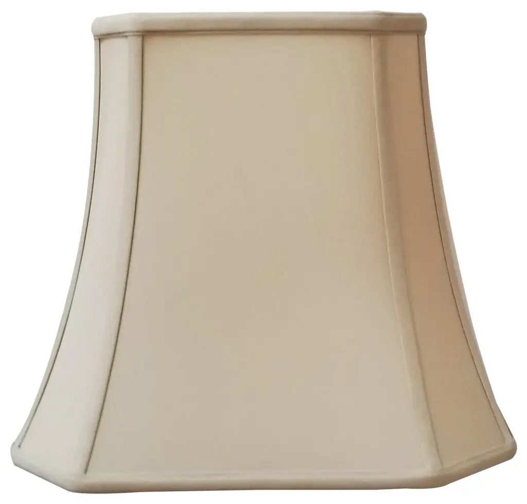 The Square Cut Corner Lamp Shade features clean lines and soft curves. The dimensions of this shade work best with smaller, more narrow lamp bases. With a variety of fabrics and color options, it is versatile enough for use in traditional, transitional and modern homes. The Square Cut Corner Lamp Shade is part of the Royal Designs, Inc. Timeless™ Basic Shade Collection. Royal Designs has been in the lamp shade business since 1993 with our multiple shade lines that exemplify handcrafted quality and value. Height is measured by slant height from top to bottom of the lampshades"™ front face. Measurements listed as (TOP x BOTTOM x HEIGHT). Please measure your existing shade--a replacement harp may be needed for a proper fit or additional adjustment if changing height of shade.-Shade Dimensions: 8 x 12 x 11.5 (Top x Bottom x Height)-Shape: Square Cut Corner-Fabric: Hand Tailored Silk-Type Shantung Fabric, Premium Off-White Softback Lining-Washer: Standard (0.5 inch recess) brass-finish spider fitter w/ trademark stamping. (Shades with 9"?+ top diameter have a V-Notch fitter for use with a 6"? or 8"? reflector bowl)-Frame: Heavy grade 1.5mm rust resistant metal frame. Thicker than typical standard lamp shades