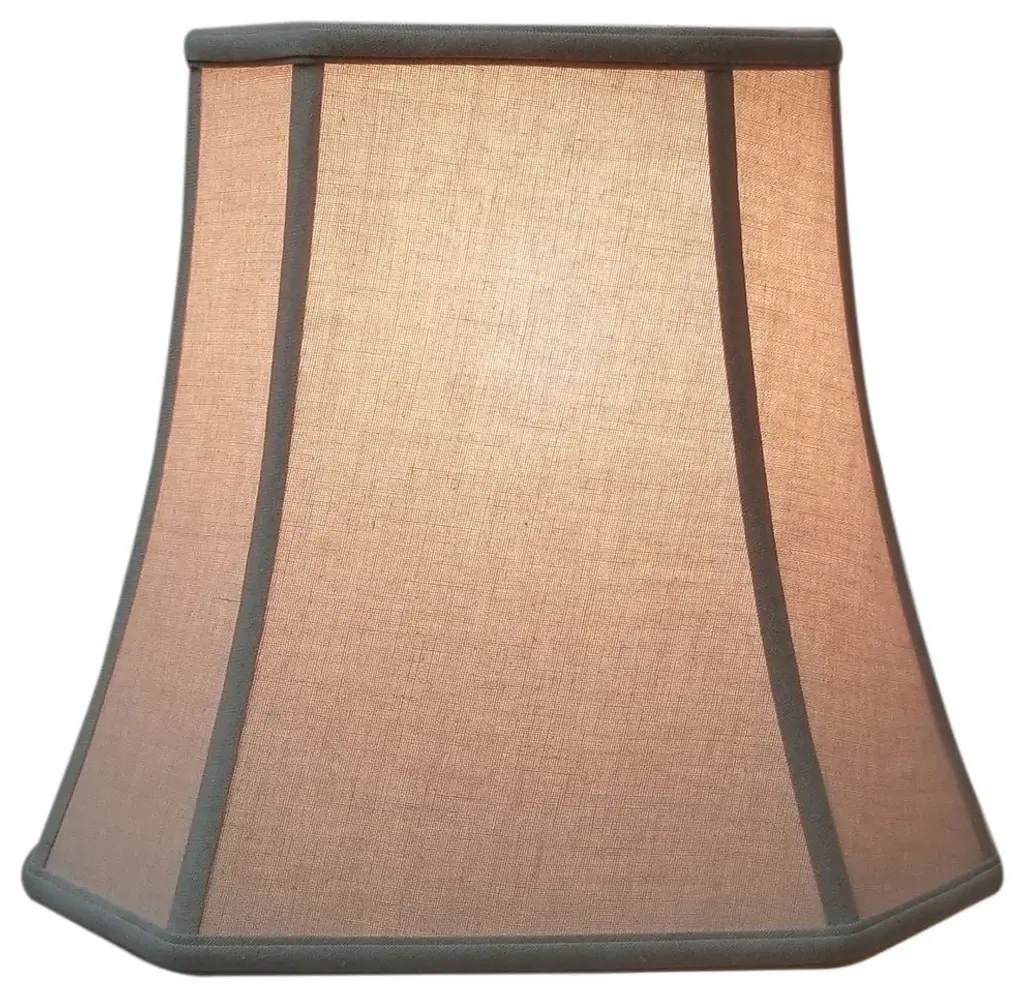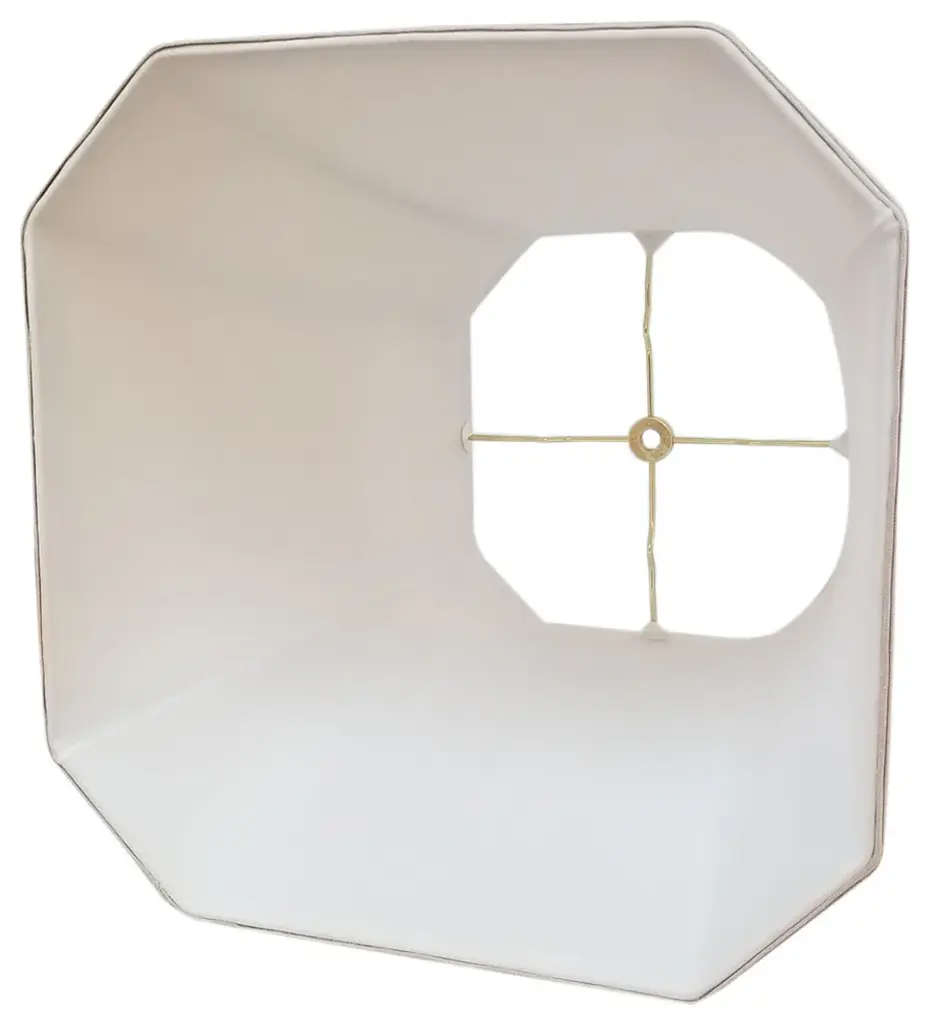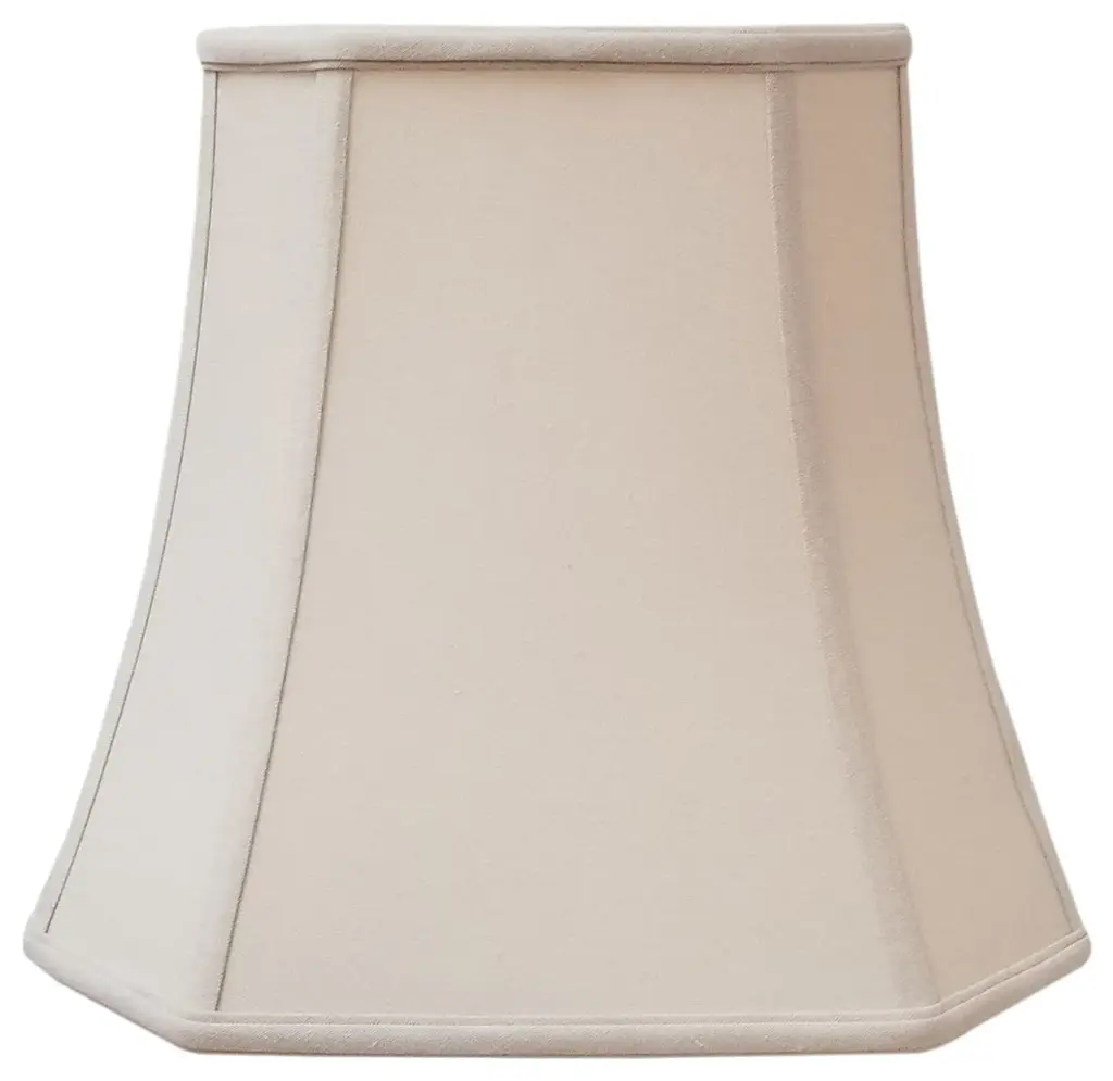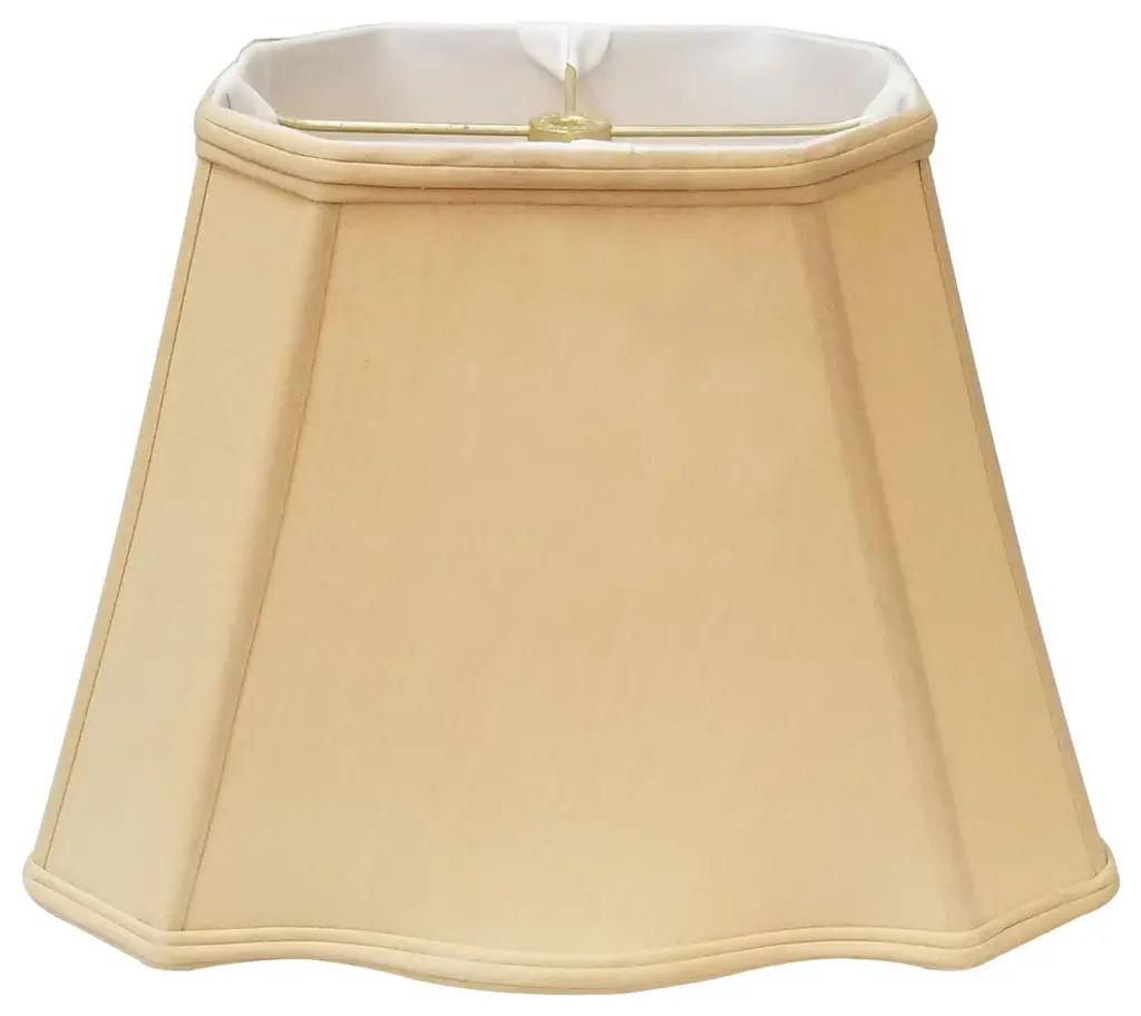 The Square Cut Corner Lamp Shade features clean lines and soft curves. The dimensions of this shade work best with smaller, more narrow lamp bases. With a variety of fabrics and color options, it is versatile enough for use in traditional, transitional and modern homes. The Square Cut Corner Lamp Shade is part of the Royal Designs, Inc. Timeless™ Basic Shade Collection. Royal Designs has been in the lamp shade business since 1993 with our multiple shade lines that exemplify handcrafted quality and value. Height is measured by slant height from top to bottom of the lampshades"™ front face. Measurements listed as (TOP x BOTTOM x HEIGHT). Please measure your existing shade--a replacement harp may be needed for a proper fit or additional adjustment if changing height of shade.-Shade Dimensions: 8 x 12 x 11.5 (Top x Bottom x Height)-Shape: Square Cut Corner-Fabric: Hand Tailored Silk-Type Shantung Fabric, Premium Off-White Softback Lining-Washer: Standard (0.5 inch recess) brass-finish spider fitter w/ trademark stamping. (Shades with 9"?+ top diameter have a V-Notch fitter for use with a 6"? or 8"? reflector bowl)-Frame: Heavy grade 1.5mm rust resistant metal frame. Thicker than typical standard lamp shades