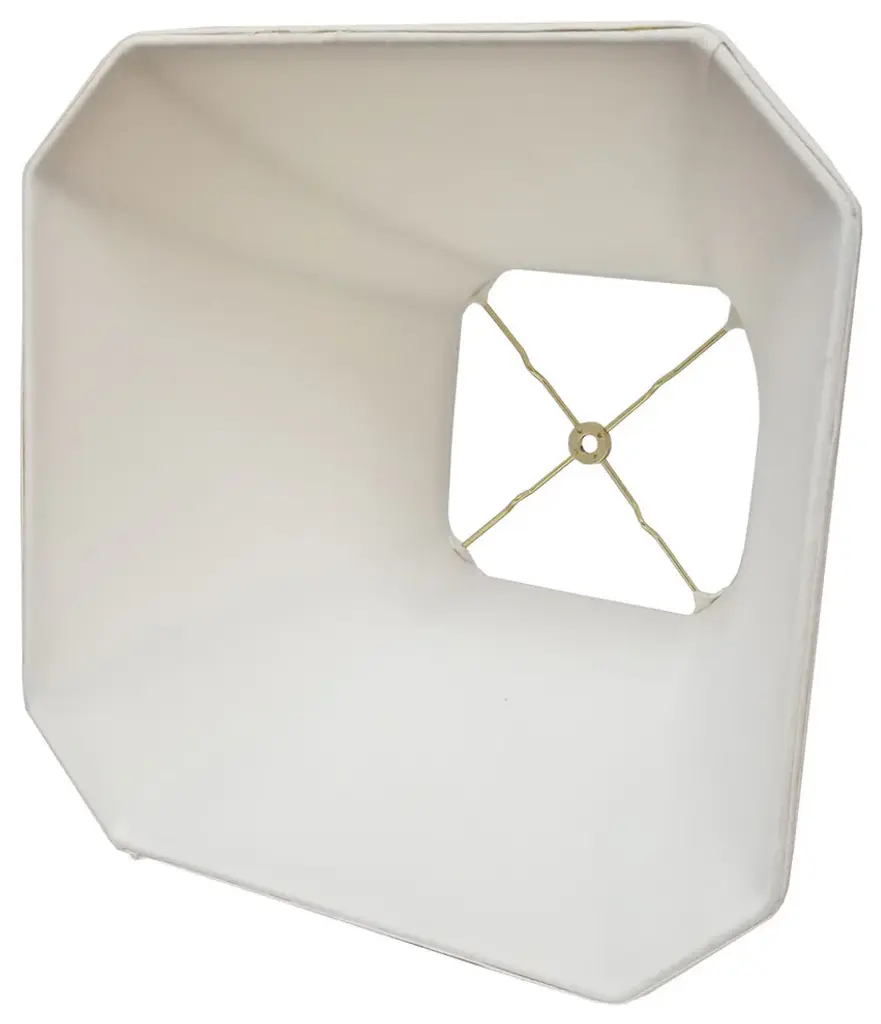 This lamp shade is sleek and modern with its square shape and cut corners. Clean lines are accentuated with trim on the top and bottom, and vertical piping. Made of tailored silk-type shantung fabric with an off-white softback lining (black shades have gold softback lining) to create a warm, soft glow. The Square Cut Corner Bell Lamp Shade is part of the Royal Designs, Inc. Timeless™ Basic Shade Collection. Royal Designs has been in the lamp shade business since 1993 with our multiple shade lines that exemplify handcrafted quality and value. Height is measured by slant height from top to bottom of the lampshades"™ front face. Measurements listed as (TOP x BOTTOM x HEIGHT). Please measure your existing shade--a replacement harp may be needed for a proper fit or additional adjustment if changing height of shade. Exterior Fabric: Hand Tailored Silk-Type Shantung (except Linen, Mouton, Burlap & Faux Rawhide fabrics) Interior Fabric: Off-White Softback Lining (Black, Burlap & Faux Rawhide fabrics have gold lining) Washer: Standard brass-finish spider fitter, use a finial to fasten shade. (Shades with 9"+ top diameter have a V-Notch fitter for use with a 6" or 8" reflector bowl)Trim: Top and bottom trim (single or double) with vertical piping Frame: Heavy grade rust resistant metal frame Bulb: Suggested maximum wattage is 150-watt for most sizesHeight is measured by slant height from top to bottom of the lampshadesfront facePlease measure your existing shade--a replacement harp may be needed for a proper fit or additional adjustment if changing height of shade.
