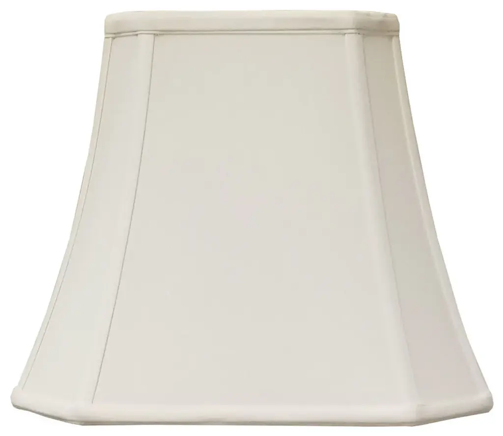 This lamp shade is sleek and modern with its square shape and cut corners. Clean lines are accentuated with trim on the top and bottom, and vertical piping. Made of tailored silk-type shantung fabric with an off-white softback lining (black shades have gold softback lining) to create a warm, soft glow. The Square Cut Corner Bell Lamp Shade is part of the Royal Designs, Inc. Timeless™ Basic Shade Collection. Royal Designs has been in the lamp shade business since 1993 with our multiple shade lines that exemplify handcrafted quality and value. Height is measured by slant height from top to bottom of the lampshades"™ front face. Measurements listed as (TOP x BOTTOM x HEIGHT). Please measure your existing shade--a replacement harp may be needed for a proper fit or additional adjustment if changing height of shade. Exterior Fabric: Hand Tailored Silk-Type Shantung (except Linen, Mouton, Burlap & Faux Rawhide fabrics) Interior Fabric: Off-White Softback Lining (Black, Burlap & Faux Rawhide fabrics have gold lining) Washer: Standard brass-finish spider fitter, use a finial to fasten shade. (Shades with 9"+ top diameter have a V-Notch fitter for use with a 6" or 8" reflector bowl)Trim: Top and bottom trim (single or double) with vertical piping Frame: Heavy grade rust resistant metal frame Bulb: Suggested maximum wattage is 150-watt for most sizesHeight is measured by slant height from top to bottom of the lampshadesfront facePlease measure your existing shade--a replacement harp may be needed for a proper fit or additional adjustment if changing height of shade.