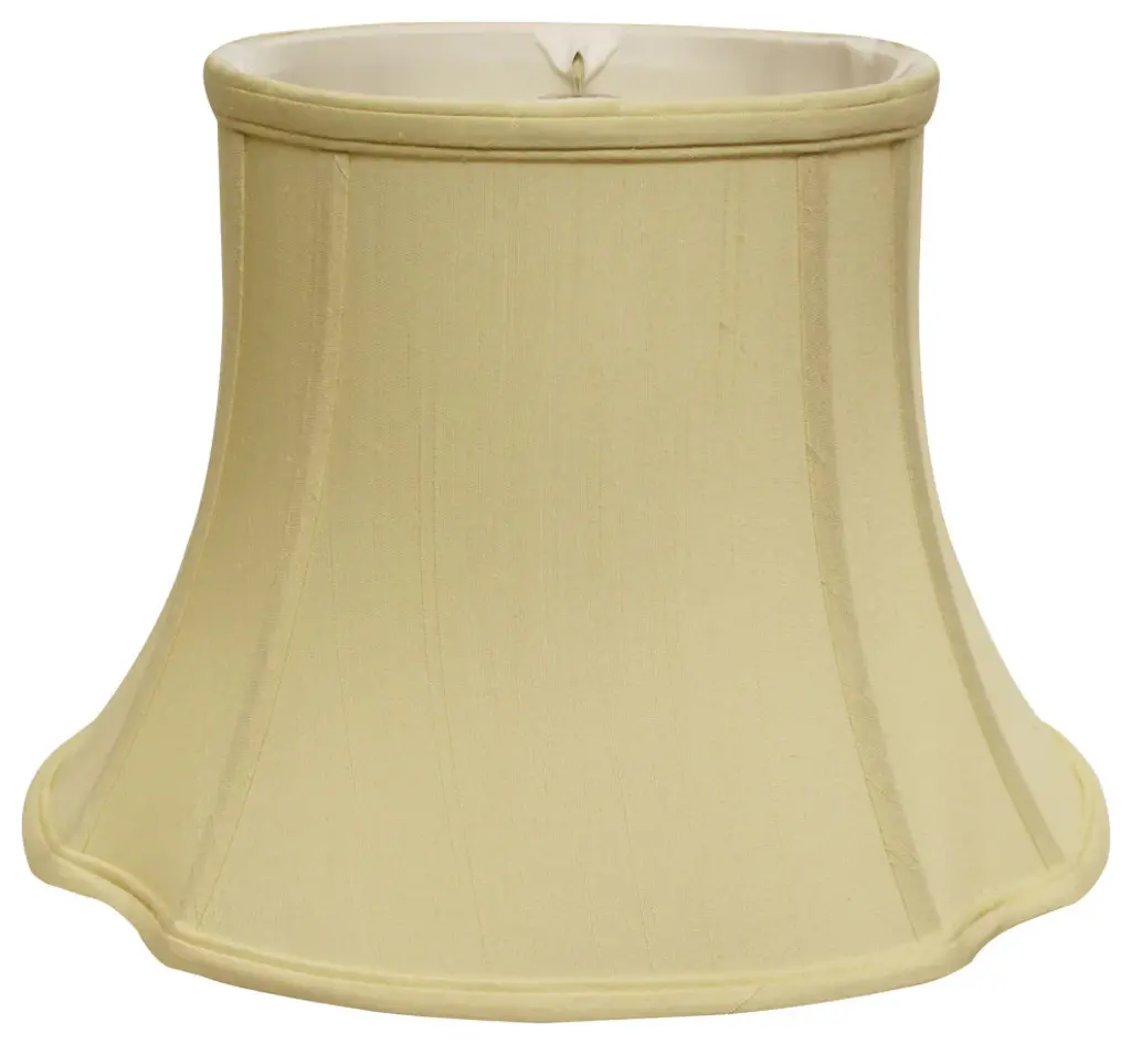 This True Bell Basic Lampshade with a Flame Clip is a part of Royal Designs, Inc. Timeless Basic Shade Collection and is perfect for anyone who is looking for a traditional yet stunning lampshade. Royal Designs has been in the lampshade business since 1993 with their multiple shade lines that exemplify handcrafted quality and value. Exterior Fabric: Hand Tailored Silk-Type Shantung (except Linen, Mouton, Burlap & Faux Rawhide fabrics) Interior Fabric: Off-White softback lining (Black, Burlap & Faux Rawhide fabrics have gold lining) FLAME CLIP (FC) Fitter designed to fit over a Candelabra bulb base. (Most clip-on lampshadesare designed with double clip). Suggested maximum wattage is 60-watt candelabra bulb. Trim: Top and bottom trim (single or double) with vertical piping Trim: Top and bottom trim (single or double) with vertical piping Frame: Heavy grade rust resistant metal frame Bulb: Suggested maximum wattage is 150-watt for most sizes (clip on shade max 60W) Height is measured by slant height from top to bottom of the lampshadesfront facePlease measure your existing shade--a replacement harp may be needed for a proper fit or additional adjustment if changing height of shade