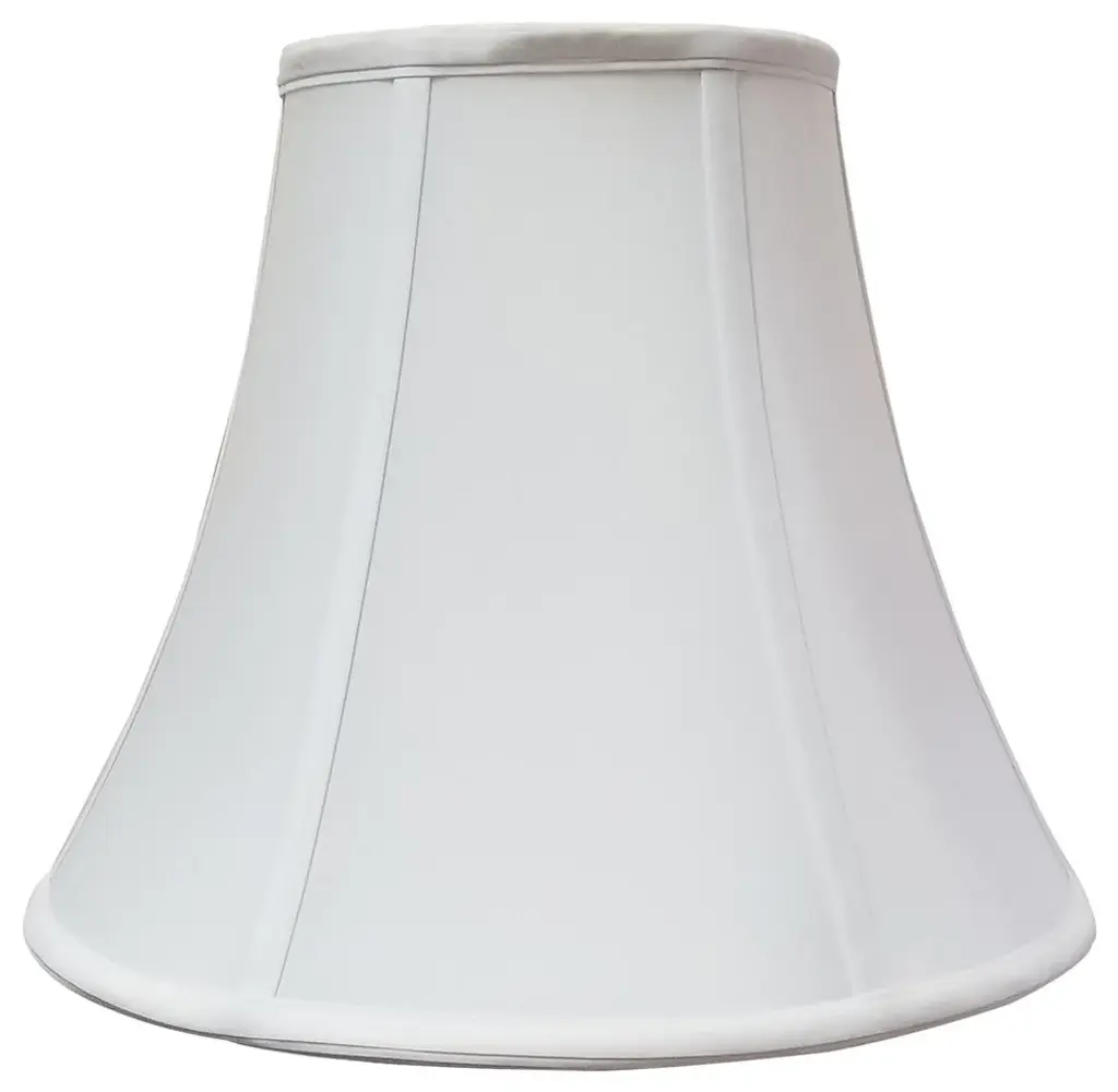 This True Bell Basic Lampshade is a part of Royal Designs, Inc. Timeless Basic Shade Collection and is perfect for anyone who is looking for a traditional yet stunning lampshade. Royal Designs has been in the lampshade business since 1993 with their multiple shade lines that exemplify handcrafted quality and value. Exterior Fabric: Hand Tailored Silk-Type Shantung (except Linen, Mouton, Burlap & Faux Rawhide fabrics) Interior Fabric: Off-White Softback Lining (Black, Burlap & Faux Rawhide fabrics have gold lining) Washer: Standard brass-finish spider fitter, use a finial to fasten shade. (All shades with 9 in + top diameter have a V-Notch fitter for use on a 6 in or 8 in reflector bowl) Trim: Top and bottom trim (single or double) with vertical piping Frame: Heavy grade rust resistant metal frame Bulb: Suggested maximum wattage is 150-watt for most sizesHeight is measured by slant height from top to bottom of the lampshadesfront facePlease measure your existing shade--a replacement harp may be needed for a proper fit or additional adjustment if changing height of shade