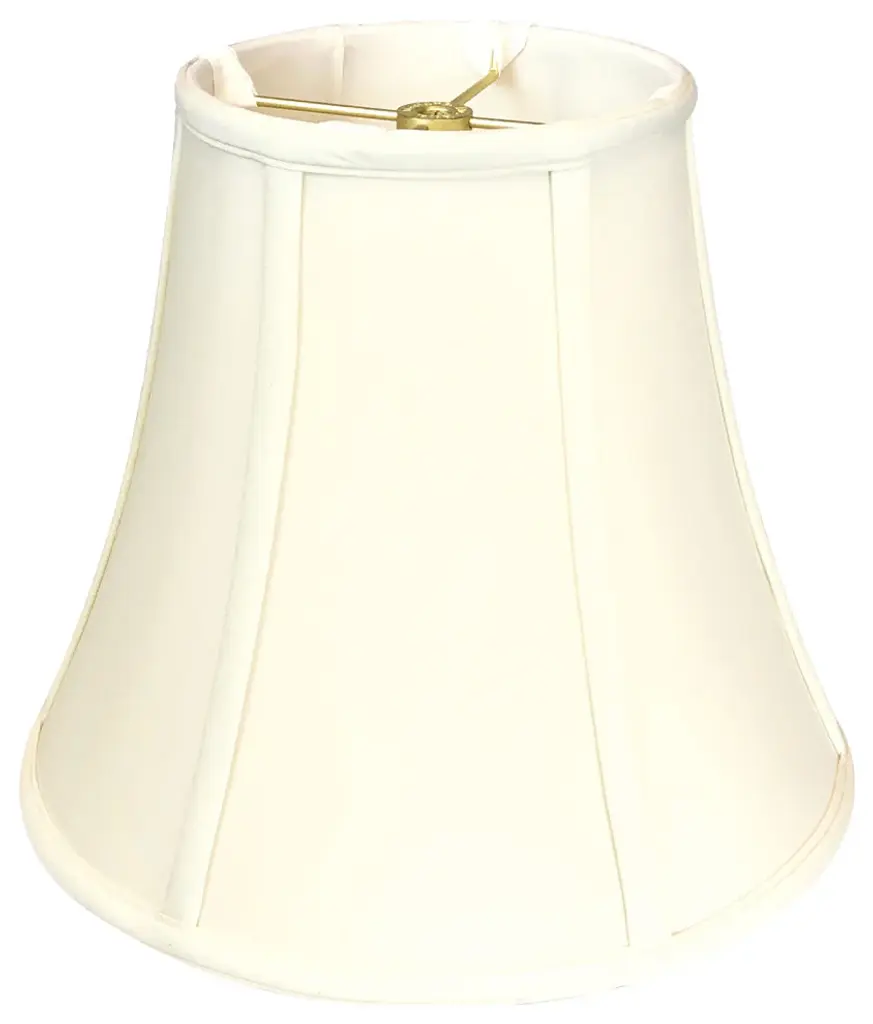 This True Bell Basic Lampshade is a part of Royal Designs, Inc. Timeless Basic Shade Collection and is perfect for anyone who is looking for a traditional yet stunning lampshade. Royal Designs has been in the lampshade business since 1993 with their multiple shade lines that exemplify handcrafted quality and value. Exterior Fabric: Hand Tailored Silk-Type Shantung (except Linen, Mouton, Burlap & Faux Rawhide fabrics) Interior Fabric: Off-White Softback Lining (Black, Burlap & Faux Rawhide fabrics have gold lining) Washer: Standard brass-finish spider fitter, use a finial to fasten shade. (All shades with 9 in + top diameter have a V-Notch fitter for use on a 6 in or 8 in reflector bowl) Trim: Top and bottom trim (single or double) with vertical piping Frame: Heavy grade rust resistant metal frame Bulb: Suggested maximum wattage is 150-watt for most sizesHeight is measured by slant height from top to bottom of the lampshadesfront facePlease measure your existing shade--a replacement harp may be needed for a proper fit or additional adjustment if changing height of shade