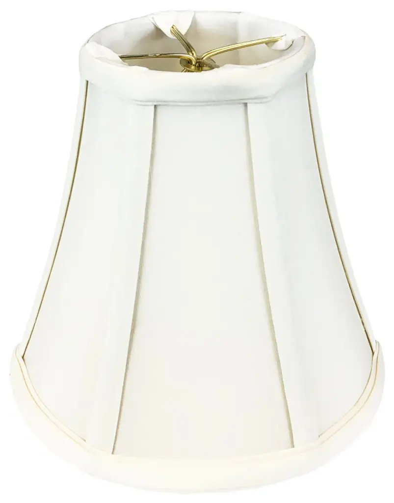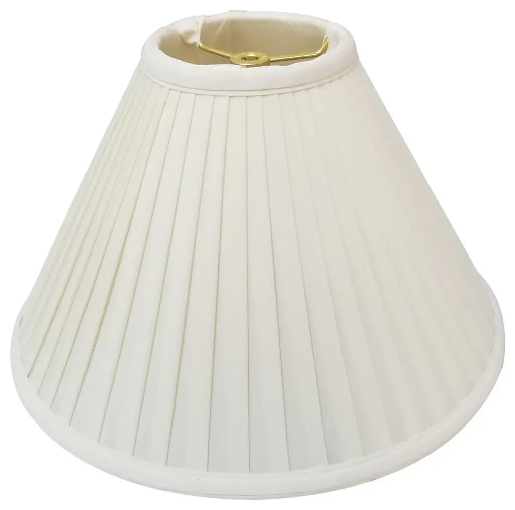 This lamp shade is a showstopper! The Twisted Pleat Lamp Shade serves up classic pleated style with a "œtwist."? Made of tailored silk-type shantung fabric with an off-white softback lining (black shades have gold softback lining) to create a warm, soft glow. The Twisted Pleat Lamp Shade is part of the Royal Designs, Inc. Timeless™ Basic Shade Collection. Royal Designs has been in the lamp shade business since 1993 with our multiple shade lines that exemplify handcrafted quality and value. Height is measured by slant height from top to bottom of the lampshades"™ front face. Measurements listed as (TOP x BOTTOM x HEIGHT). Please measure your existing shade--a replacement harp may be needed for a proper fit or additional adjustment if changing height of shade.Exterior Fabric: Hand Tailored Silk-Type Shantung (except Linen, Mouton, Burlap & Faux Rawhide fabrics)Interior Fabric: Off-White Softback Lining (Black, Burlap & Faux Rawhide fabrics have gold lining)Washer: Standard brass-finish spider fitter, use a finial to fasten shade. (All shades with 9"+ top diameter have a V-Notch fitter for use on a 6 or 8 reflector bowl)Trim: Top and bottom trim (single or double) with vertical pipingFrame: Heavy grade rust resistant metal frameBulb: Suggested maximum wattage is 150-watt for most sizes Height is measured by slant height from top to bottom of the lampshades front facePlease measure your existing shade--a replacement harp may be needed for a proper fit or additional adjustment if changing height of shade