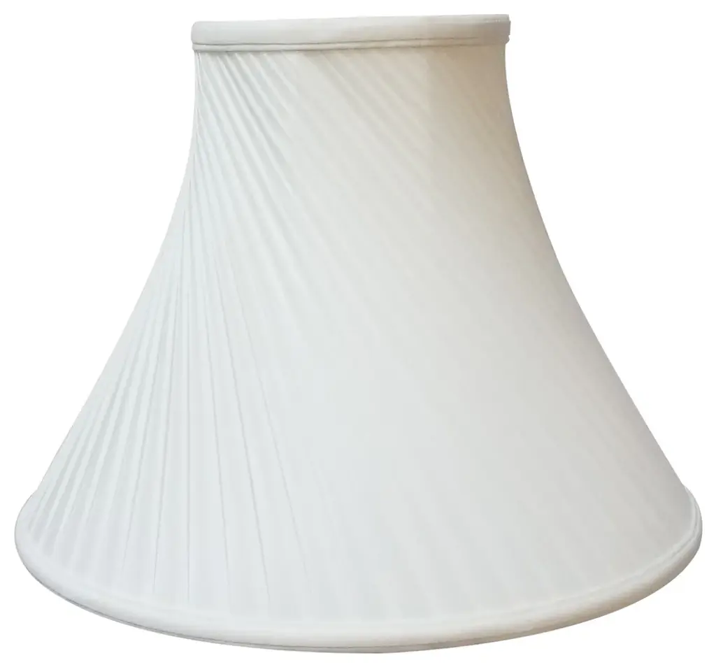 This lamp shade is a showstopper! The Twisted Pleat Lamp Shade serves up classic pleated style with a "œtwist."? Made of tailored silk-type shantung fabric with an off-white softback lining (black shades have gold softback lining) to create a warm, soft glow. The Twisted Pleat Lamp Shade is part of the Royal Designs, Inc. Timeless™ Basic Shade Collection. Royal Designs has been in the lamp shade business since 1993 with our multiple shade lines that exemplify handcrafted quality and value. Height is measured by slant height from top to bottom of the lampshades"™ front face. Measurements listed as (TOP x BOTTOM x HEIGHT). Please measure your existing shade--a replacement harp may be needed for a proper fit or additional adjustment if changing height of shade.Exterior Fabric: Hand Tailored Silk-Type Shantung (except Linen, Mouton, Burlap & Faux Rawhide fabrics)Interior Fabric: Off-White Softback Lining (Black, Burlap & Faux Rawhide fabrics have gold lining)Washer: Standard brass-finish spider fitter, use a finial to fasten shade. (All shades with 9"+ top diameter have a V-Notch fitter for use on a 6 or 8 reflector bowl)Trim: Top and bottom trim (single or double) with vertical pipingFrame: Heavy grade rust resistant metal frameBulb: Suggested maximum wattage is 150-watt for most sizes Height is measured by slant height from top to bottom of the lampshades front facePlease measure your existing shade--a replacement harp may be needed for a proper fit or additional adjustment if changing height of shade