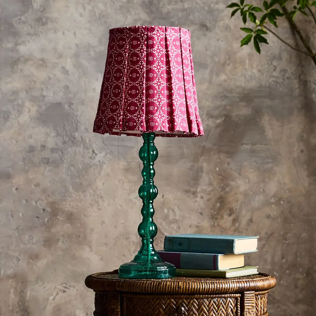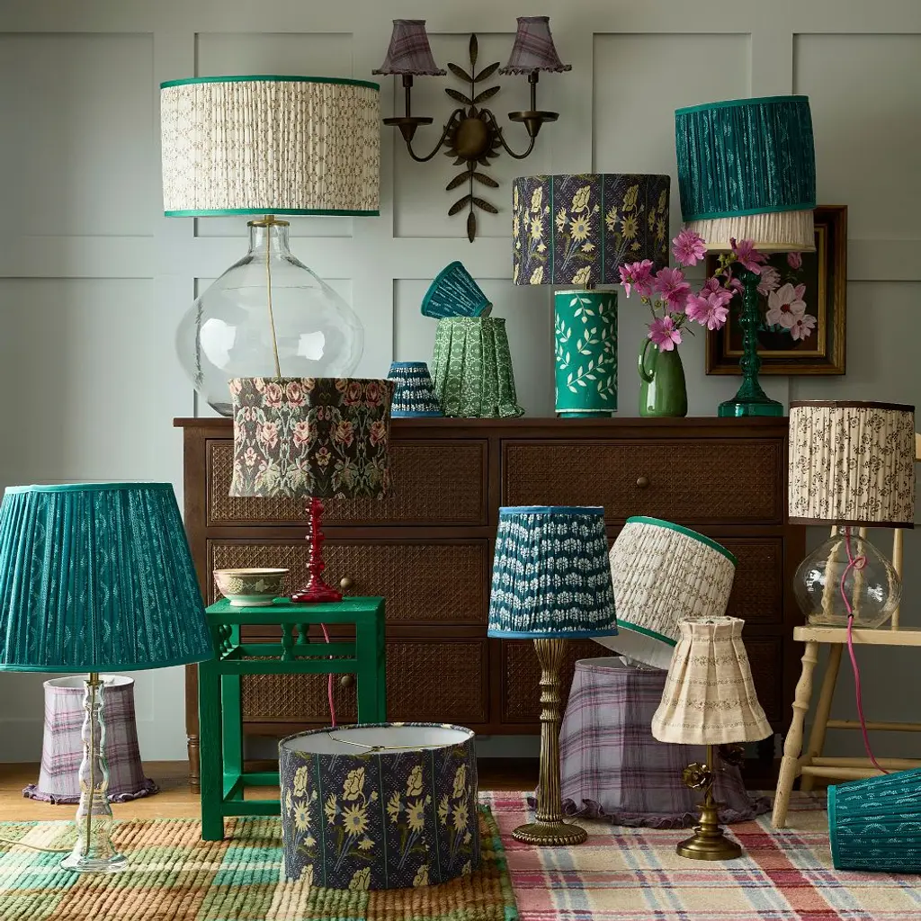 Mad for plaid. Trimmed in a ruffled edge, this 100% cotton shade is stretched over a brass-plated steel frame. A simple switch that’s oh-so charming.