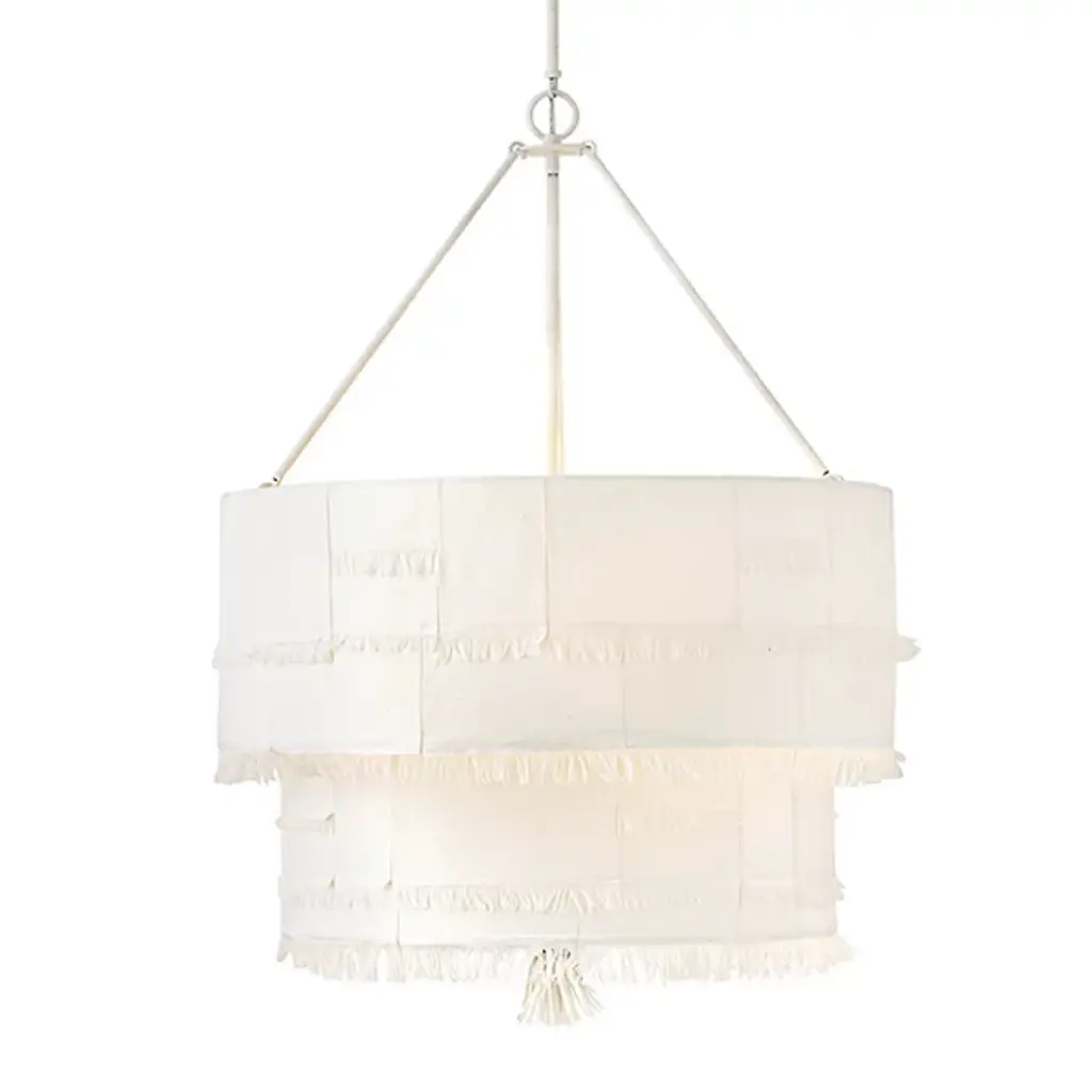 Saro Lifestyle Fringe Design Stonewashed Lamp Shade, Off-white, 12"x18"