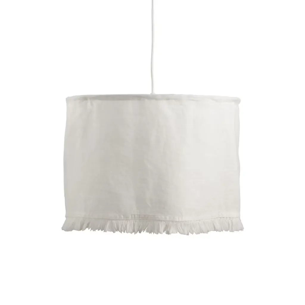 This eye-catching Stonewashed Fringe Lamp Shade is a great way to give your décor a fresh update. It features a solid color linen and finished with a fringed bottom trim. A variety of neutral shades make styling with your existing decor easy. It works great in both living room and bedroom interiors.