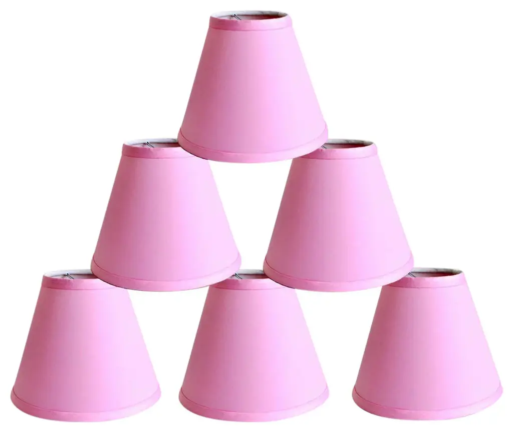 Urbanest hardback satin empire chandelier shade in pinkThis shade measures 3" across the top, 6" across the bottom, and 5" slant height.Clip-on for candleabra bulbs. Maximum recommended wattage is 40 watts.Lining of shade is whiteList price is for six shades.