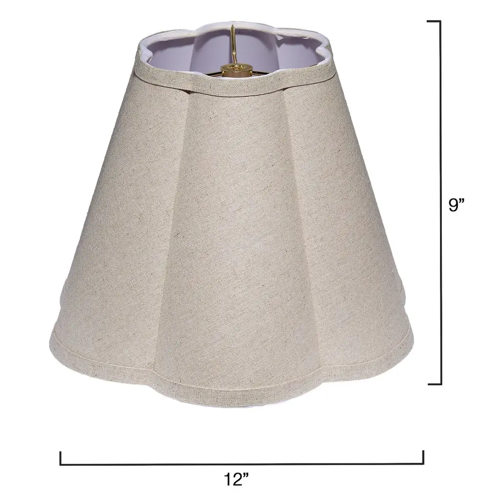 This lovely, tapered shade is distinguished by a softly scalloped shape that adds interest, femininity, and a generous splash of style. Skillfully crafted and hand-trimmed, these unique shades are an exciting and easy way to update your decor. A gold-toned harp and a brass spider are included.
