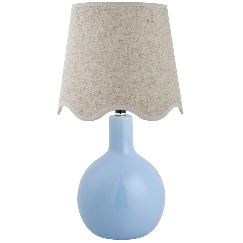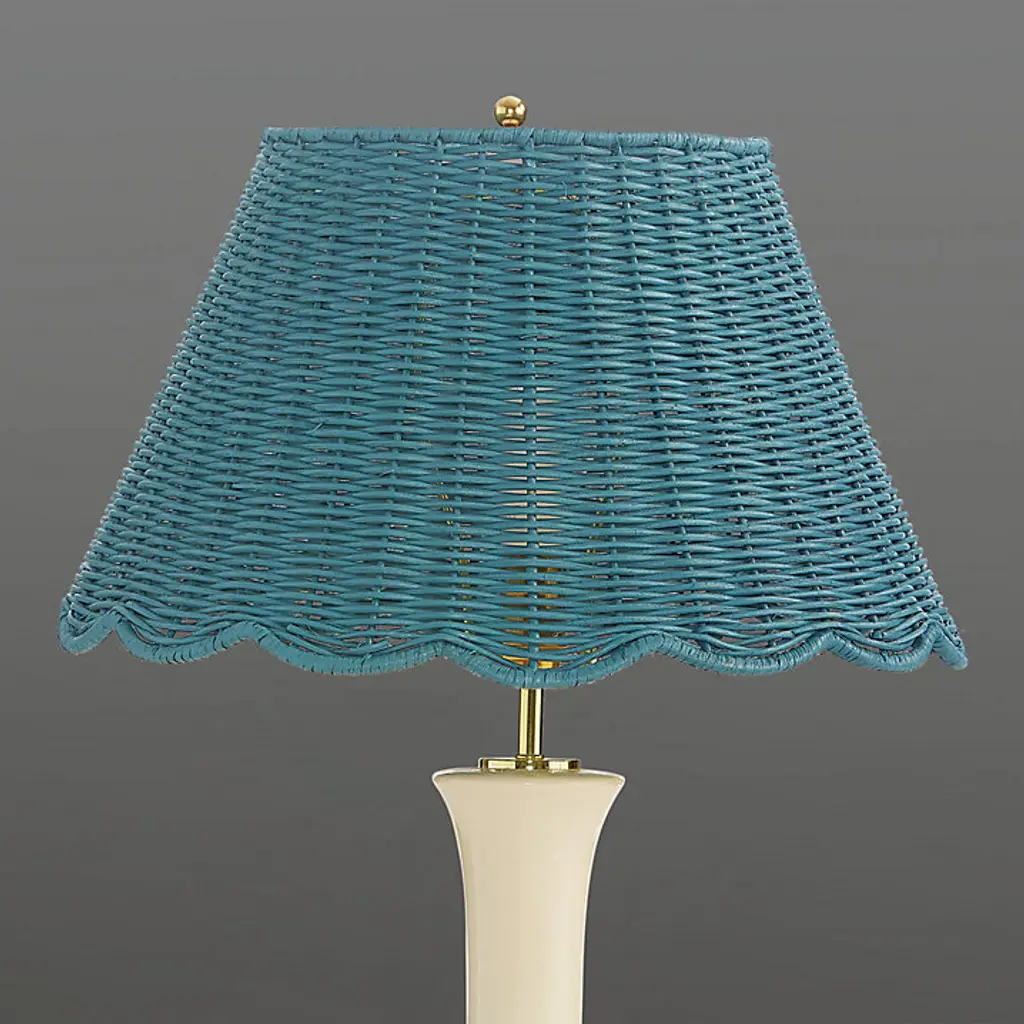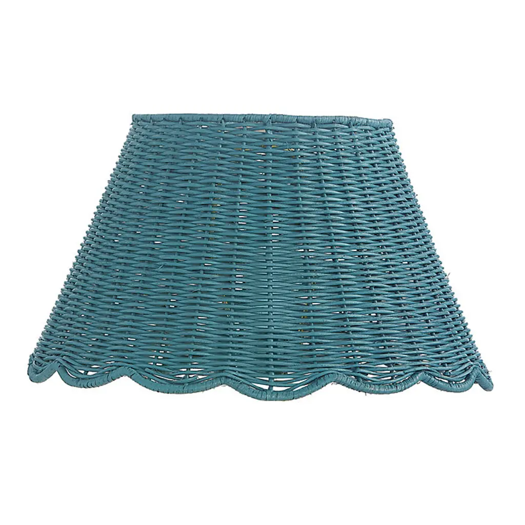 On-trend color, natural texture, and sassy scallops - our stylish Scalloped Wicker Lamp Shade has it all. The classic empire silhouette is tightly hand woven of rattan over wire with wavy scalloped edge, and drenched in fresh ocean blue color. Add this decorative shade to your favorite table lamp for an instant fashion upgrade. Scalloped Wicker Lamp Shade features: