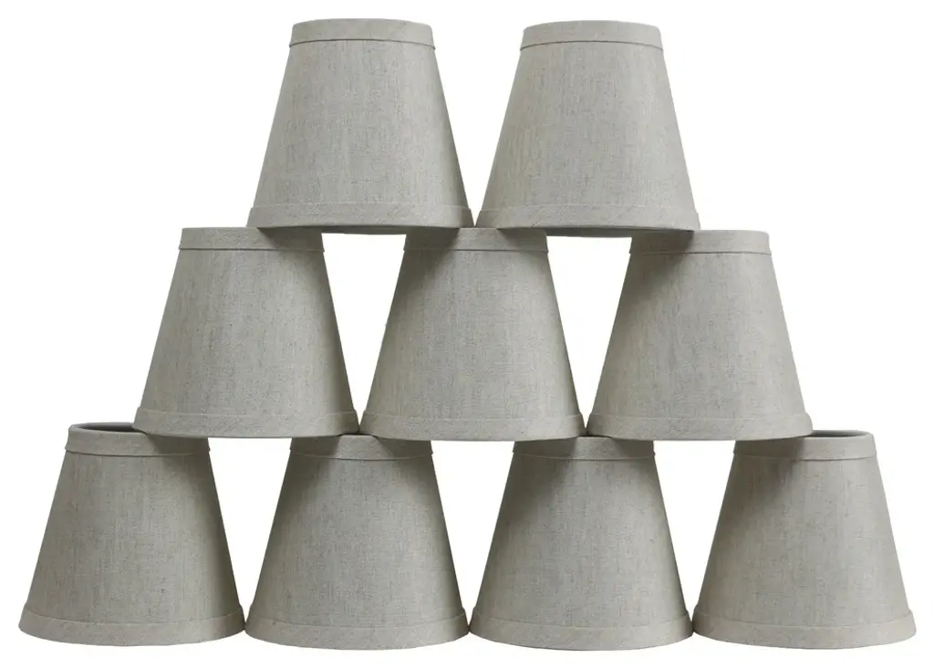 Urbanest pure linen hardback chandelier shade.This shade measures 3" across the top, 5" across the bottom, and 4 1/2" slant height.Hardback empire shape. Clip-on for candelabra bulbs. Maximum recommended wattage is 40 watts.Lining is white.List price is for nine shades.