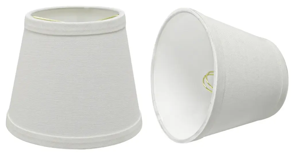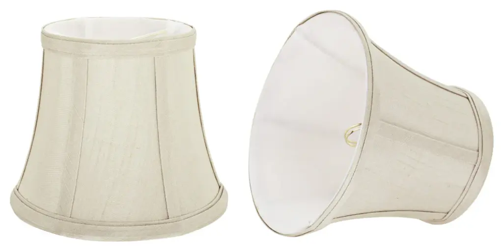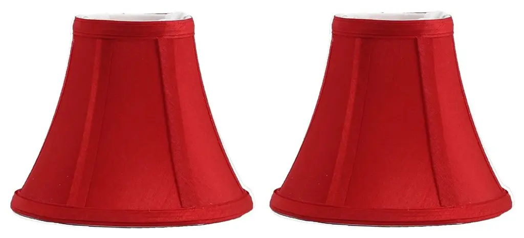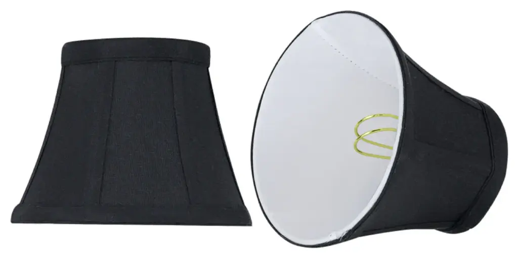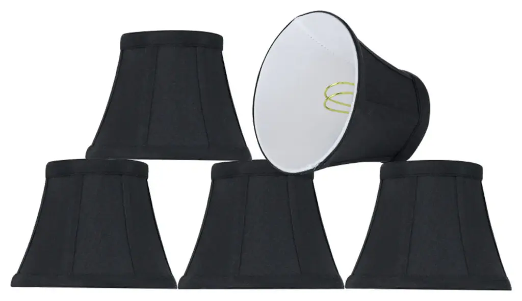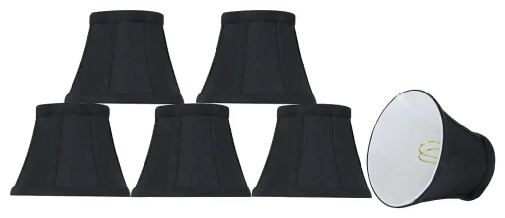 Urbanest silk bell chandelier shade in blackThis shade measures 3" across the top, 6" across the bottom, and 5" overall height.Softback silk bell shape. Clip-on for candleabra bulbs. Maximum recommended wattage is 40 watts.Lined with beige fabric.List price is for two shades.