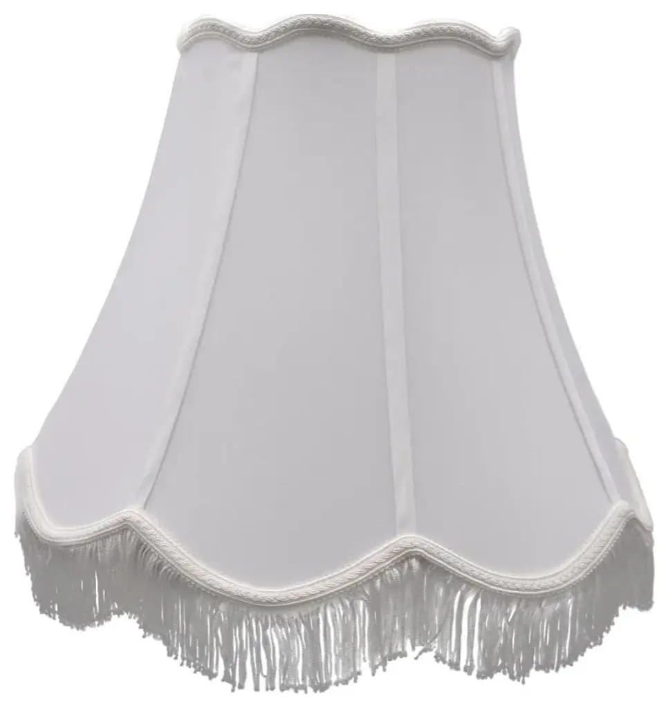Silk Scalloped Bell 10 Inch Washer Lamp Shade With Fringe, Eggshell