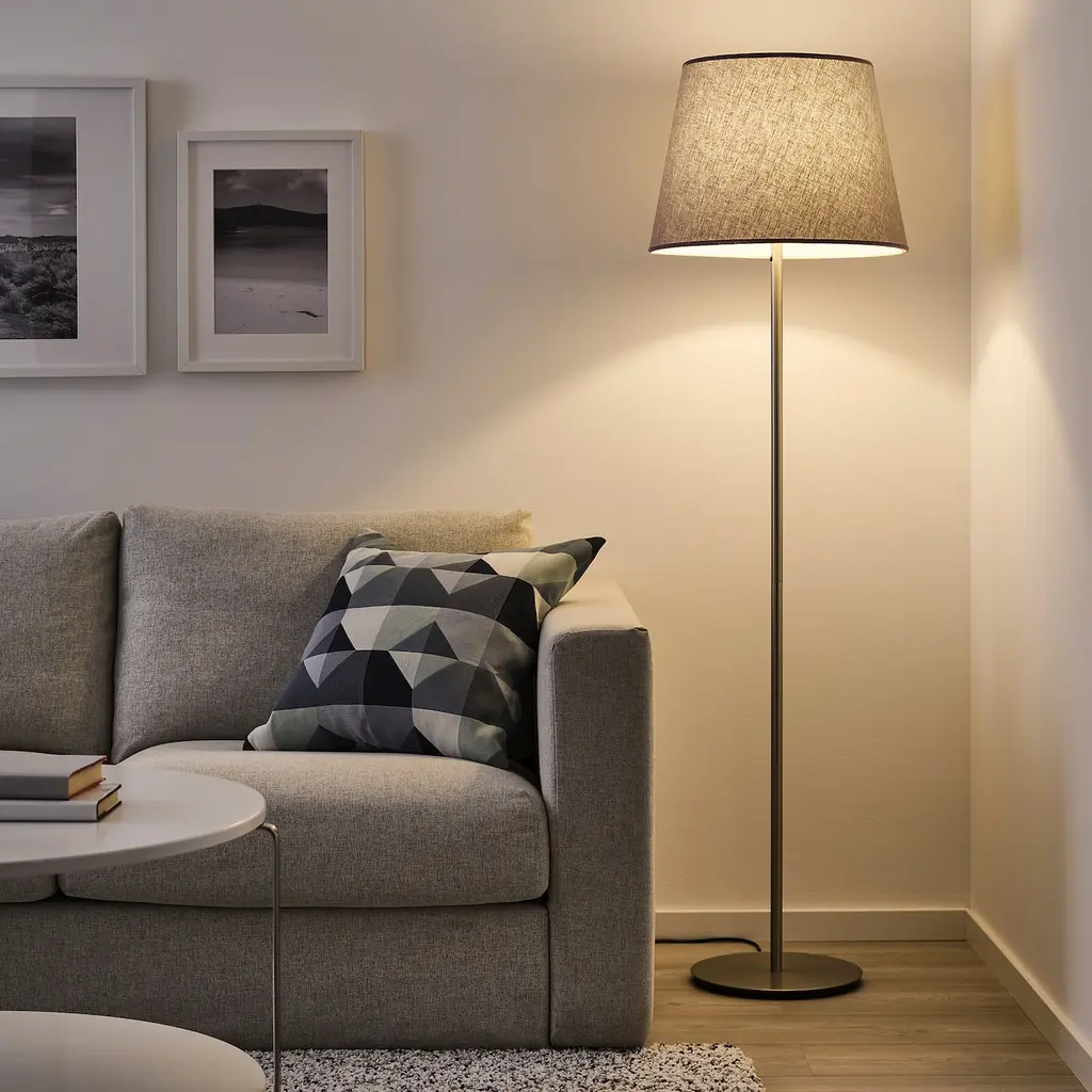 SKOTTORP Lamp shade - light gray 17 ". You can create a soft, cozy atmosphere in your home with a textile shade that spreads a diffused and decorative light. Create your own personalized pendant or floor lamp by combining the lampshade with your choice of cord set or lamp base.