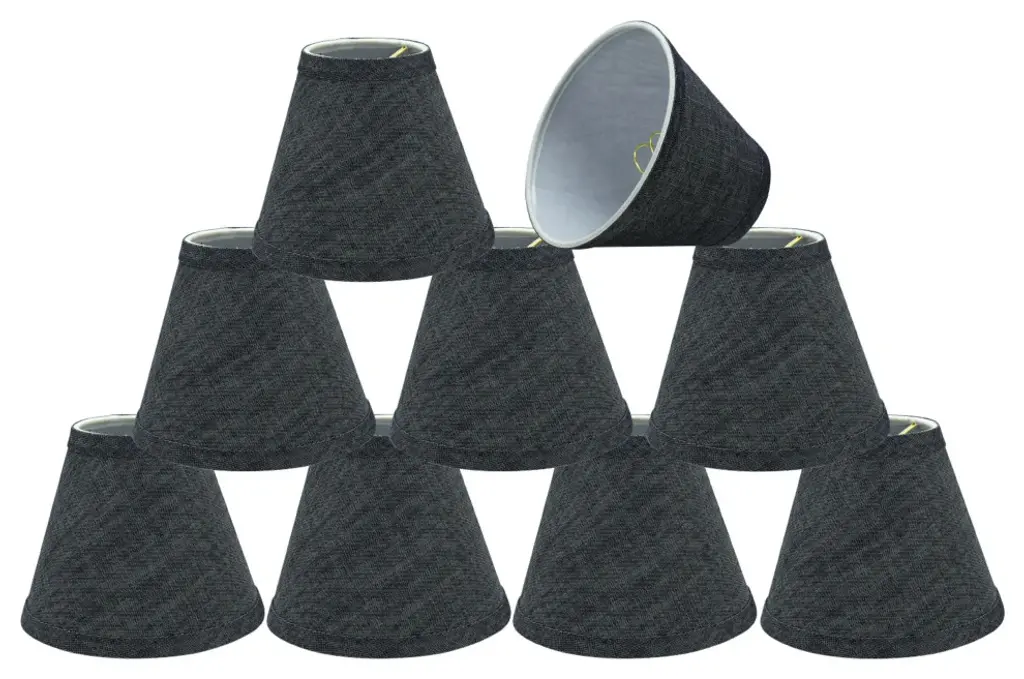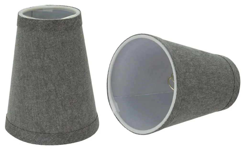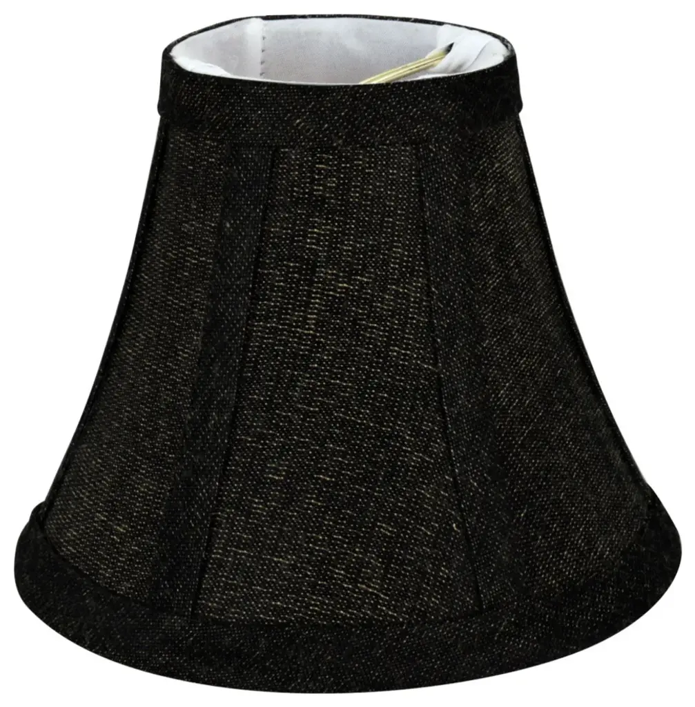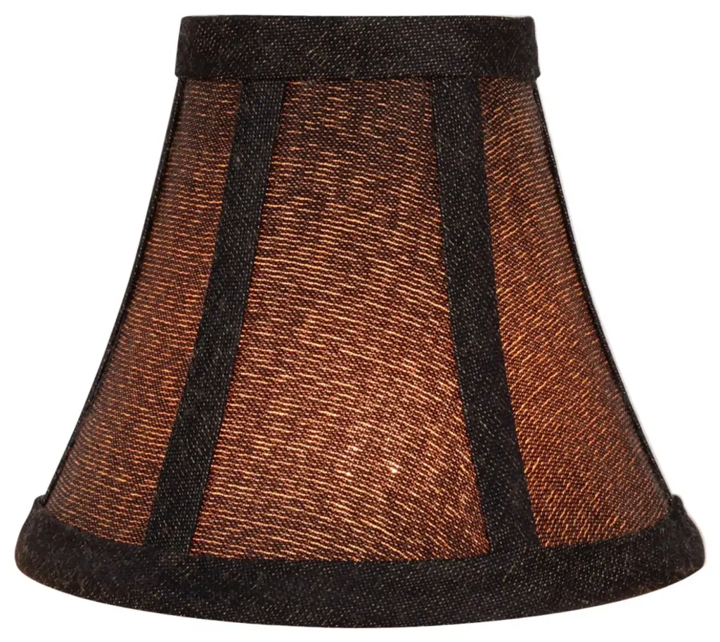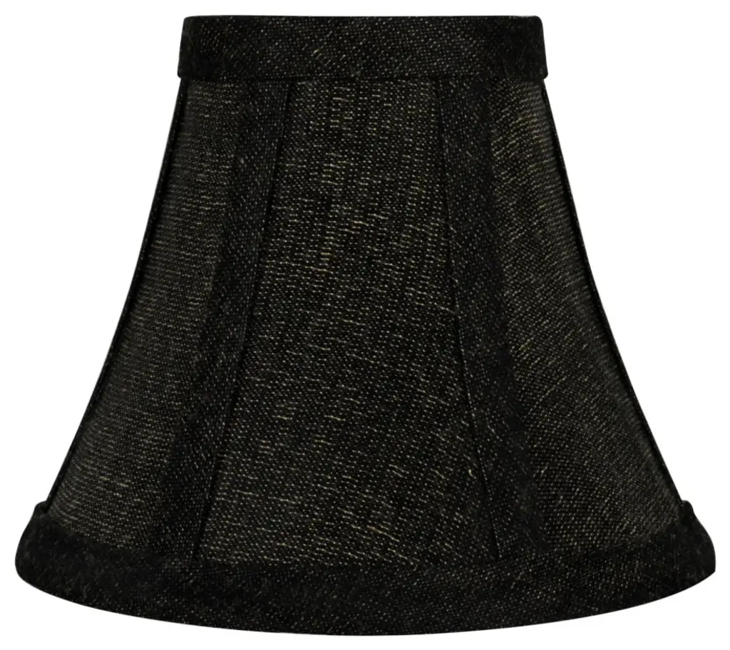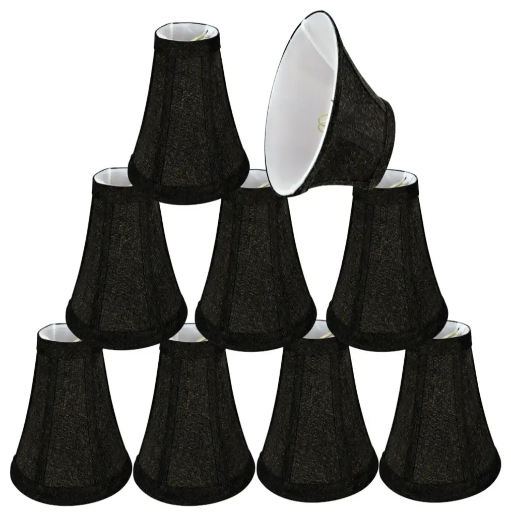 Aspen Creative is dedicated to offering a wide assortment of attractive and well-priced portable lamps, kitchen pendants, vanity wall fixtures, outdoor lighting fixtures, lamp shades, and lamp accessories. We have in-house designers that follow current trends and develop cool new products to meet those trends. Product Detail• Bell Shape Transitional (Mini Chandelier Lamp Shades) in Two-Tone Black• Bell (clip on) Replacement Shade | Textured Fabric• Clip-on style fitter designed for bare Torpedo chandelier bulbs (bend tip bulbs not recommended) either in candelabra base (E12) or medium base (E26), light bulbs not included• Clip On Lamp Shade Dimensions: 3" top x 6" bottom x 5" slant height