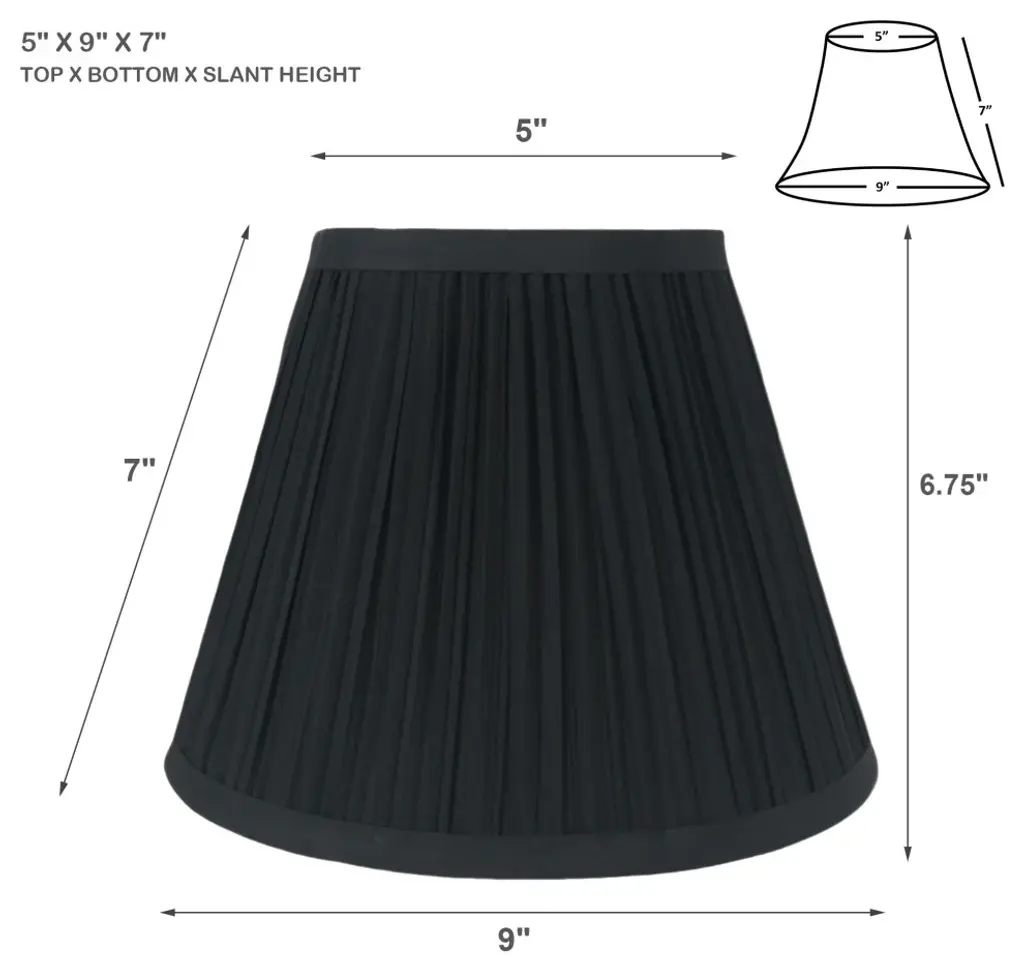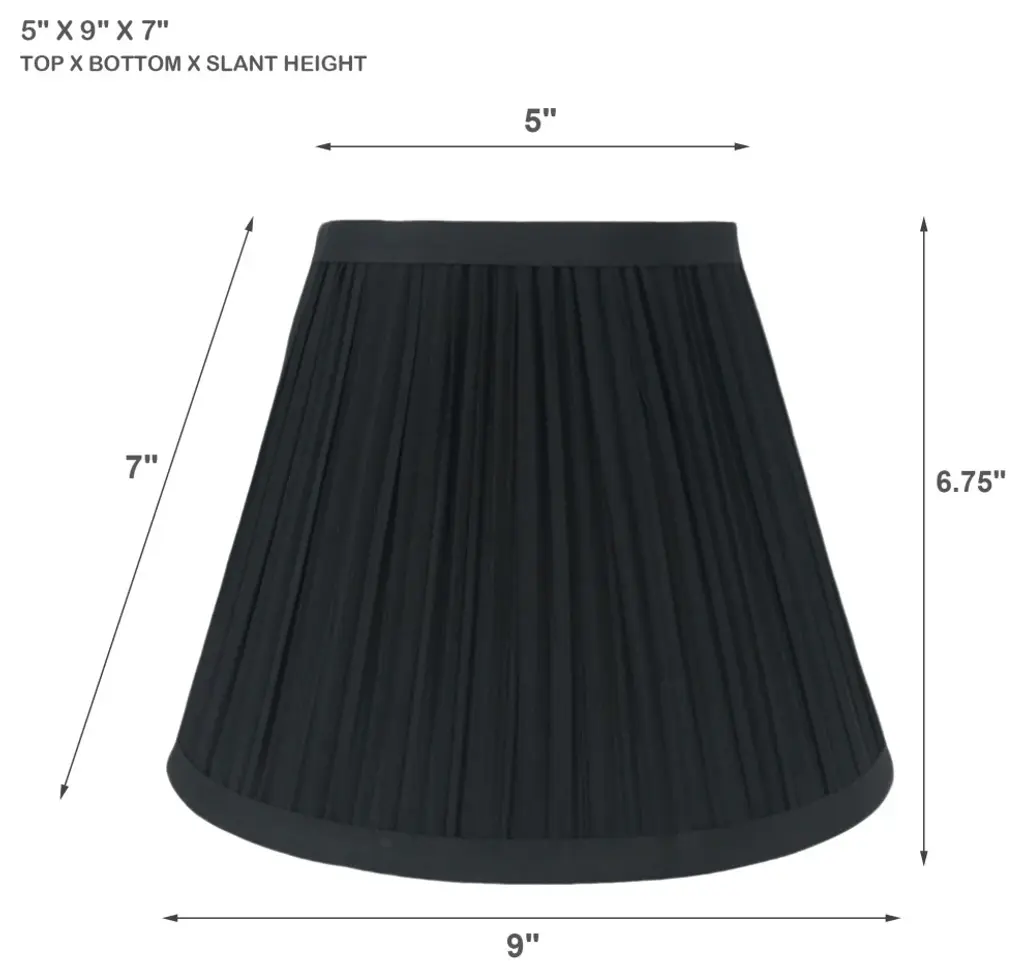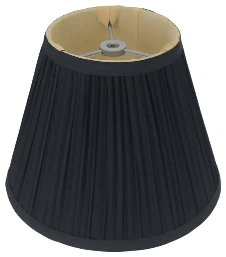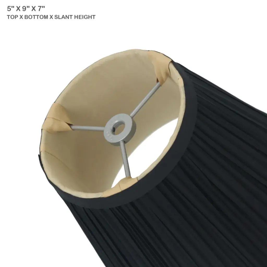 Urbanest mushroom pleated lampshadeFaux silk bell with a spider fitter. Shade is black silk with beige lining.Top diameter measures 5" across, bottom diameter measures 9" across and 7" slant height.Maximum recommended wattage is 60 watts. Bulb not included.List price is for 1 shade.