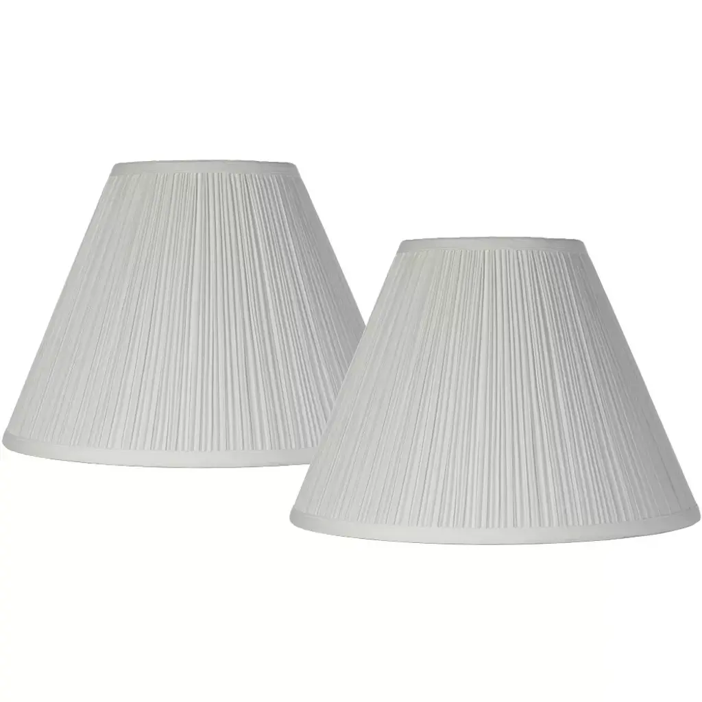 Urbanest mushroom pleated lampshadesFaux silk softback shade with brushed nickel spider fitter. Shade is champagne faux silk with white lining.Top diameter measures 5" across, bottom diameter measures 9" across and 7" slant height.Maximum recommended wattage is 60 watts. Bulb not included.List price is for 2 shades.