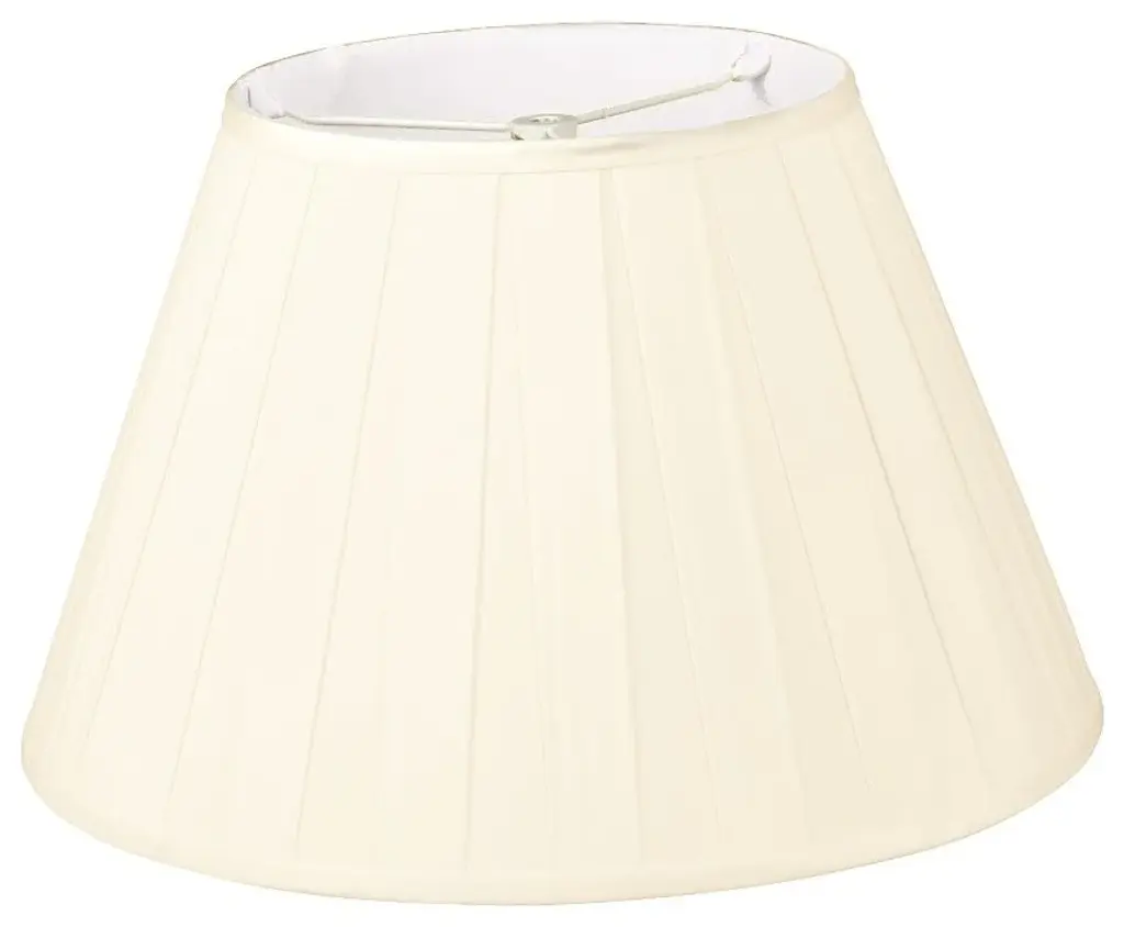 Urbanest mushroom pleated lampshadeFaux silk bell with a spider fitter. Shade is eggshell silk with white lining.Top diameter measures 5" across, bottom diameter measures 9" across and 7" slant height.Maximum recommended wattage is 60 watts. Bulb not included.List price is for 1 shade.