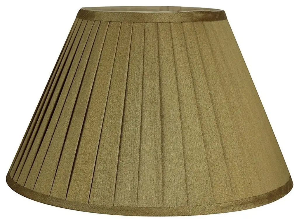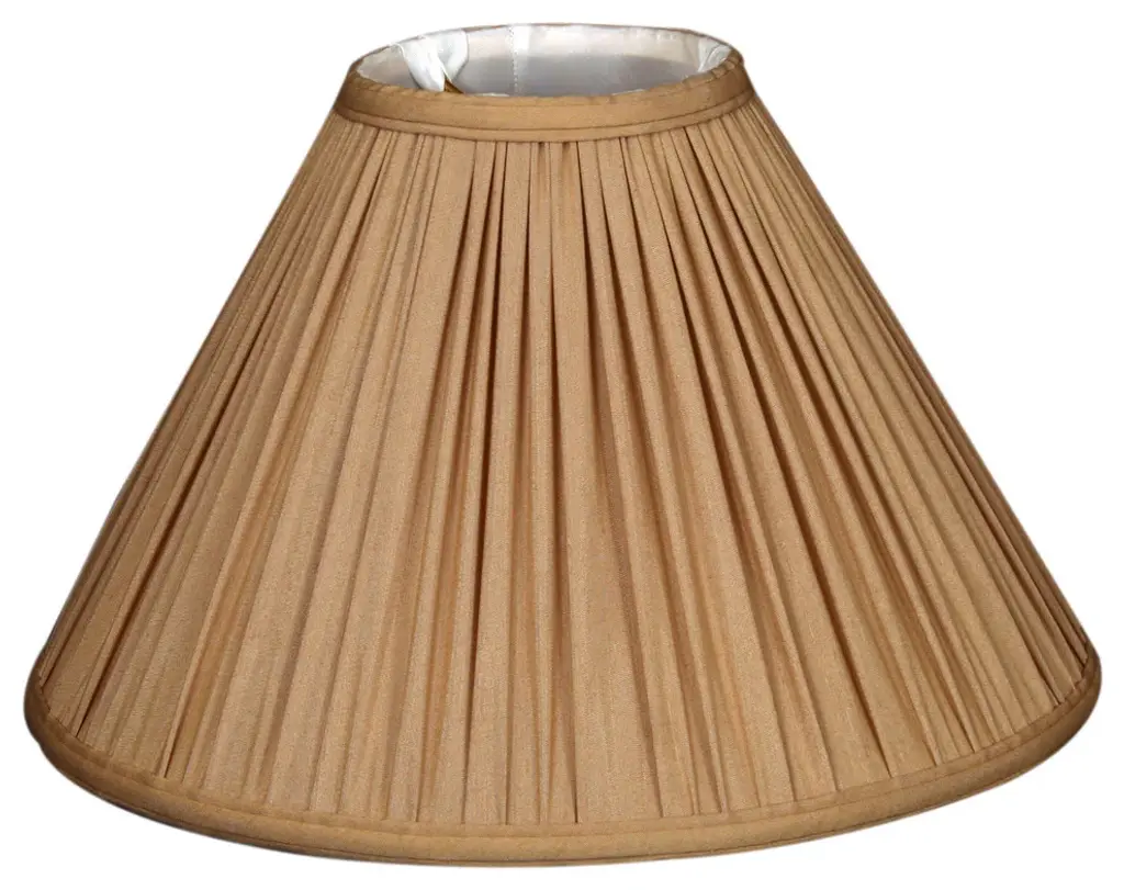 Urbanest mushroom pleated lampshadeFaux silk softback shade with brushed nickel spider fitter. Shade is golden taupe faux silk with white lining.Top diameter measures 5" across, bottom diameter measures 9" across and 7" slant height.Maximum recommended wattage is 60 watts. Bulb not included.List price is for 1 shade.