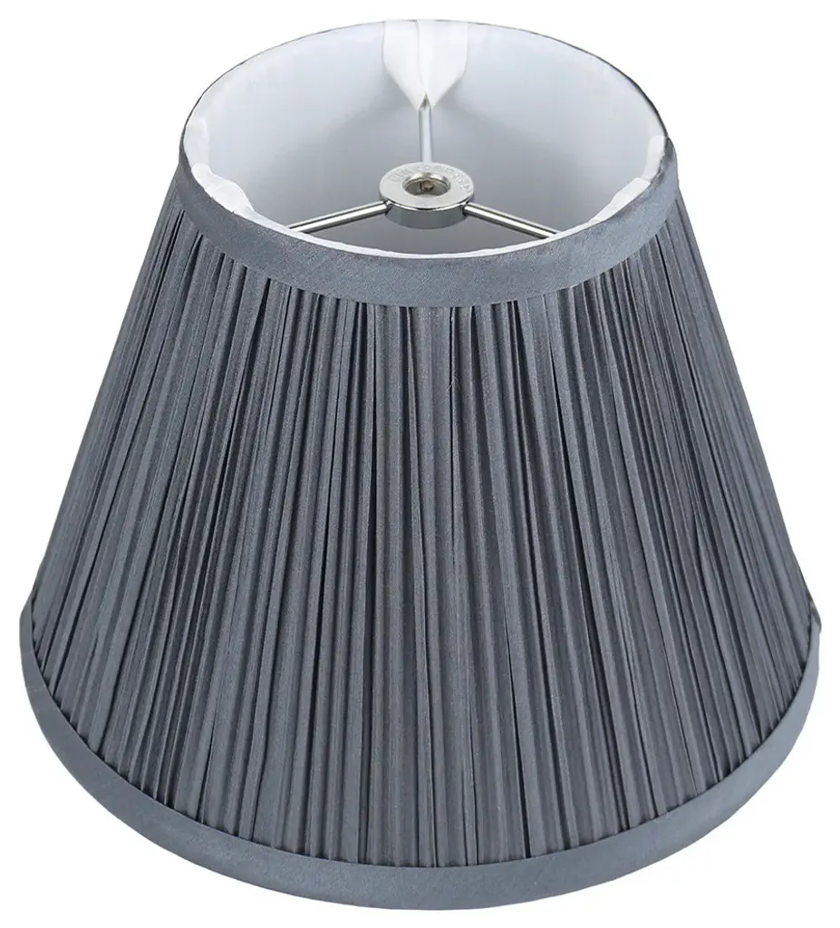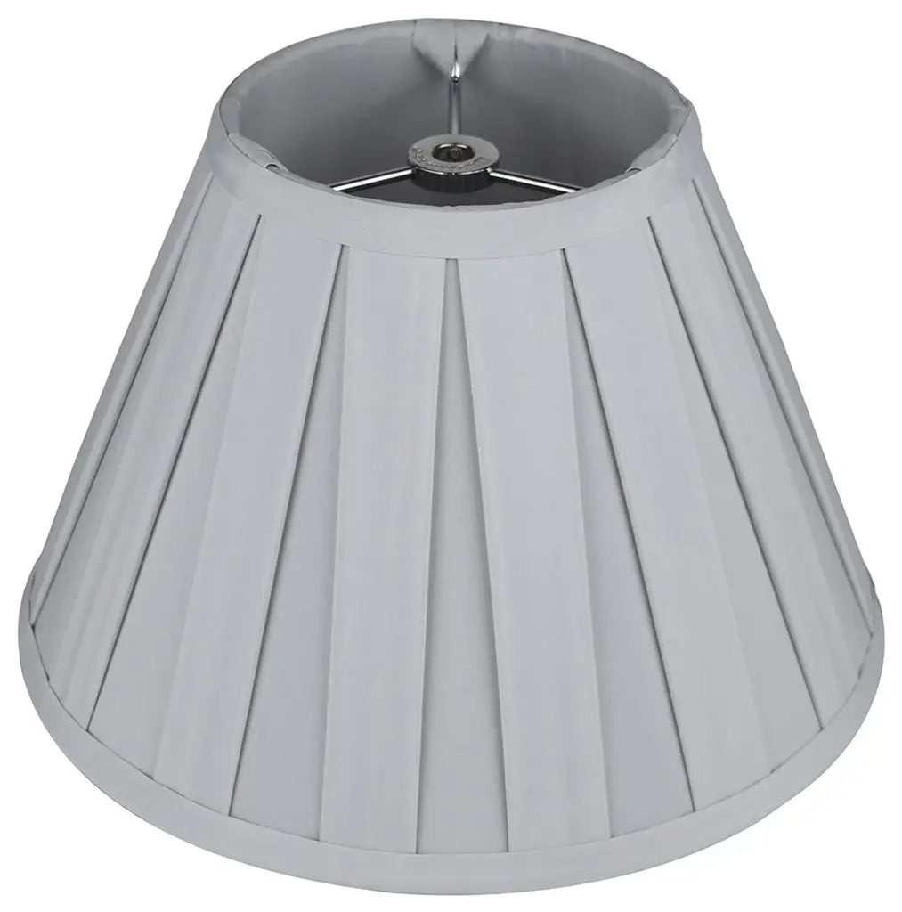 Urbanest mushroom pleated lampshadeFaux silk softback shade with brushed nickel spider fitter. Shade is gray faux silk with white lining.Top diameter measures 5" across, bottom diameter measures 9" across and 7" slant height.Maximum recommended wattage is 60 watts. Bulb not included.List price is for 1 shade.