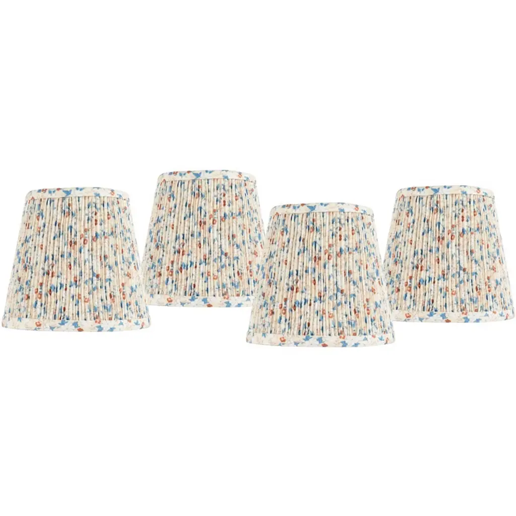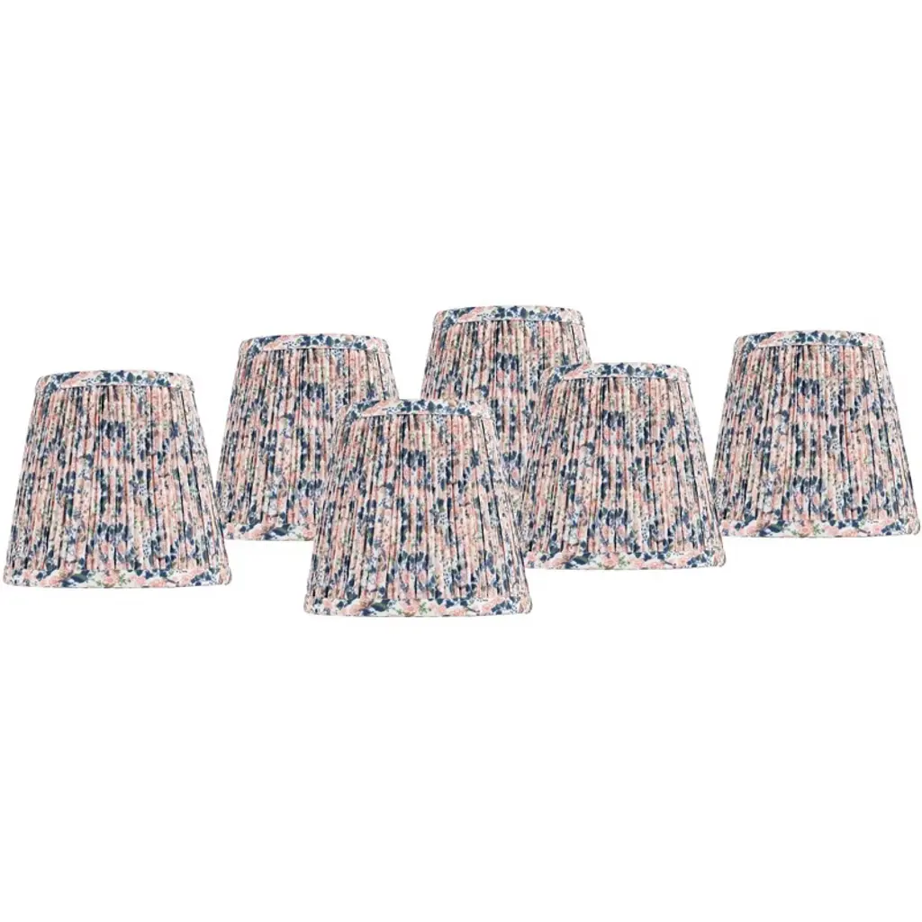 Springcrest 4" Top X 6" Bottom X 5 1/2" High X 5 1/2" Slant Print Lamp Shade Replacement Set Of 6 Small Blue Red Empire Modern Leaf Pleated Clip On