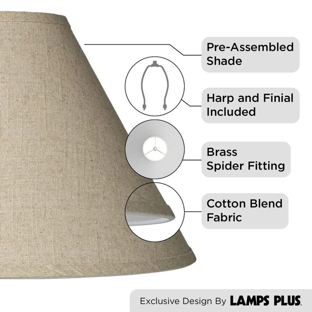 Bring a crisp, updated touch to your lighting with this impressive empire shade. The design features a cotton blend exterior, resembling fine burlap, with self-trim and a polished brass finish spider fitting. Empire shade profile from the Springcrest Collection.