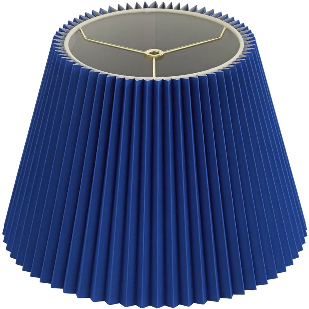 Brighten the look of any lamp with this pleated lamp shade. It features a designer blue color and wide pleating with a white fabric liner inside. Its time honored style makes it perfect for a table or floor lamp. Spider fitting, and the correct size harp is included free with this shade. From the Springcrest Collection brand of lamp shades.