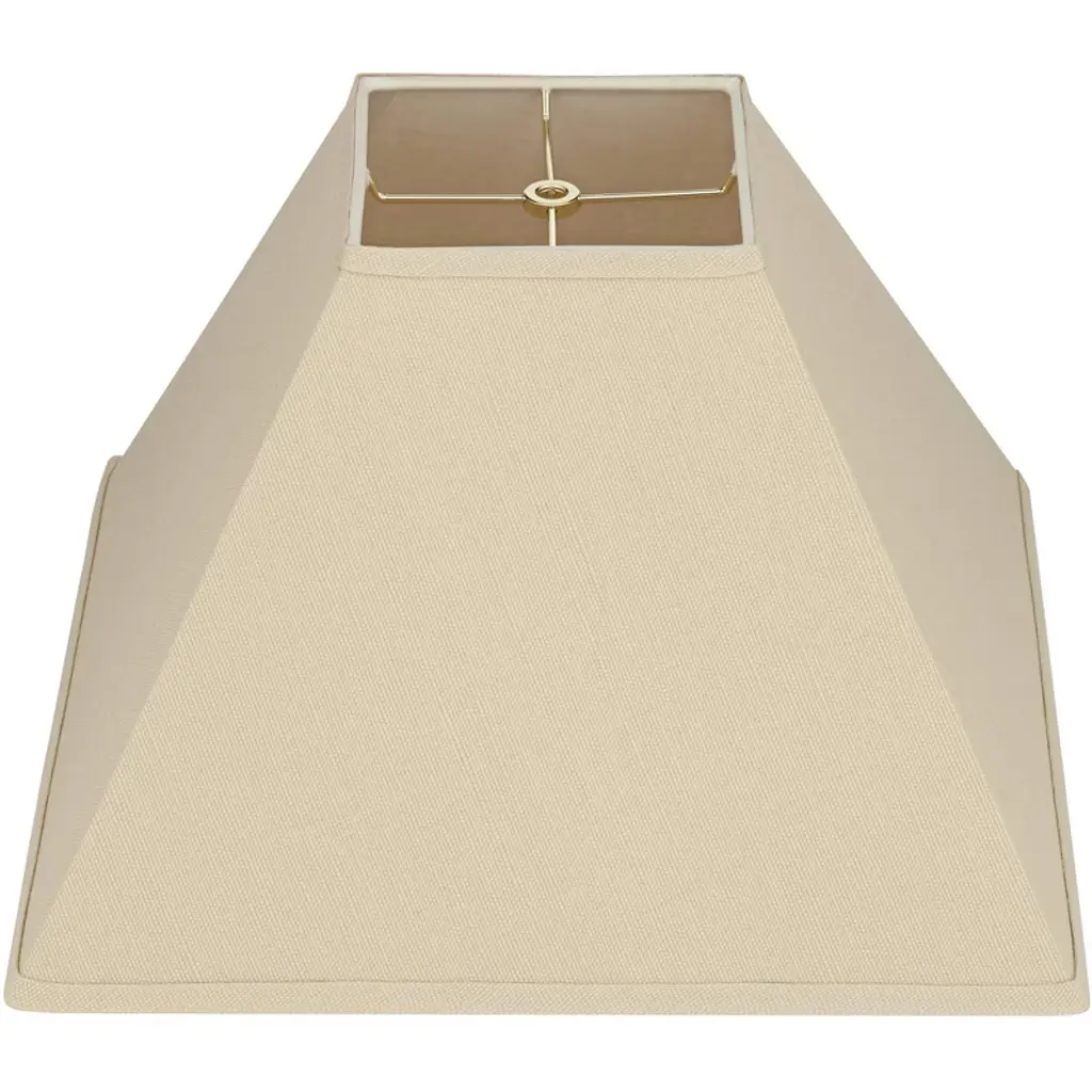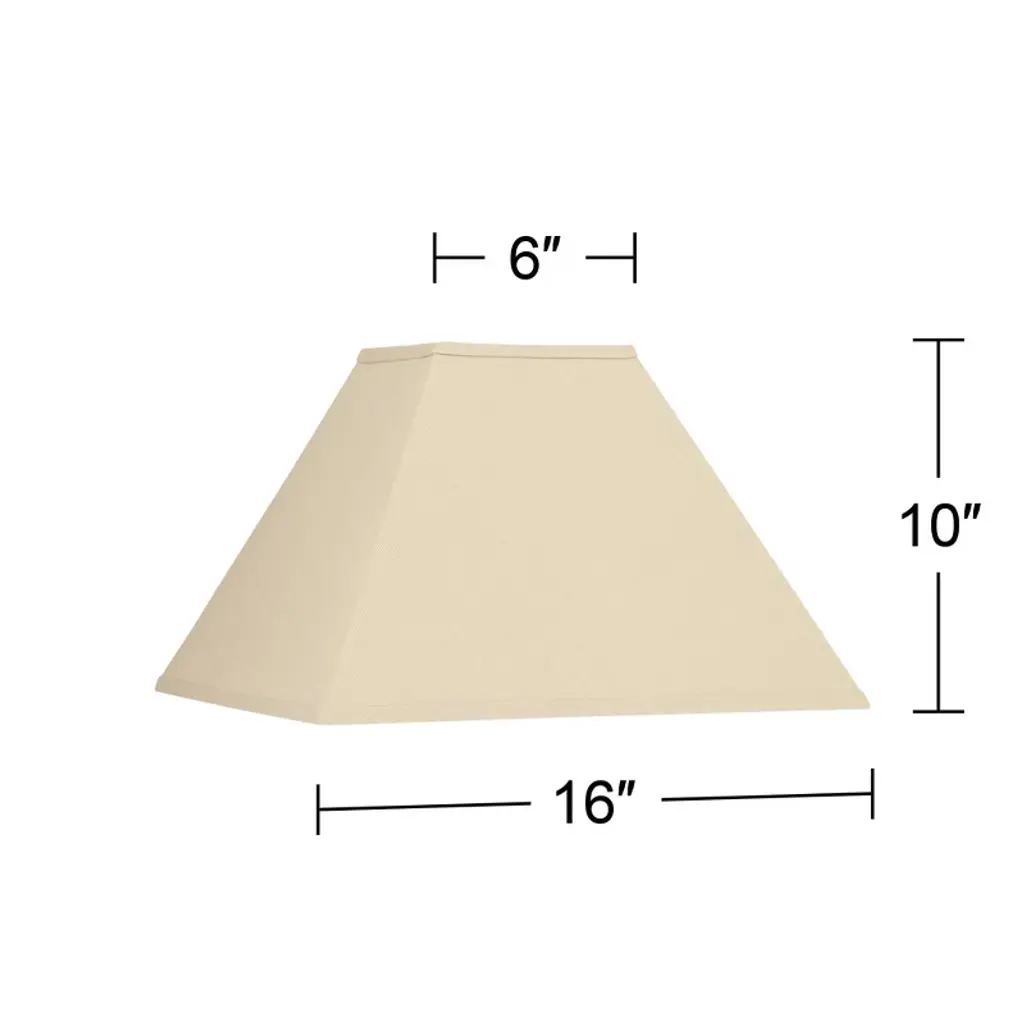 Springcrest Beige Linen Medium Square Lamp Shade 6" Top X 16" Bottom X 12" Slant X 10" High (Spider) Replacement With Harp And Finial