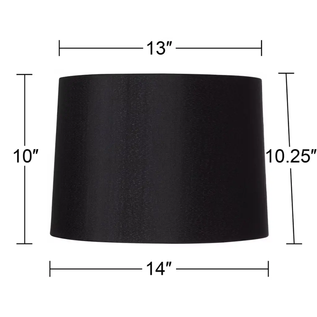 Springcrest Black Medium Hardback Drum Lamp Shade 13" Top X 14" Bottom X 10.25" Slant X 10" High (Spider) Replacement With Harp And Finial