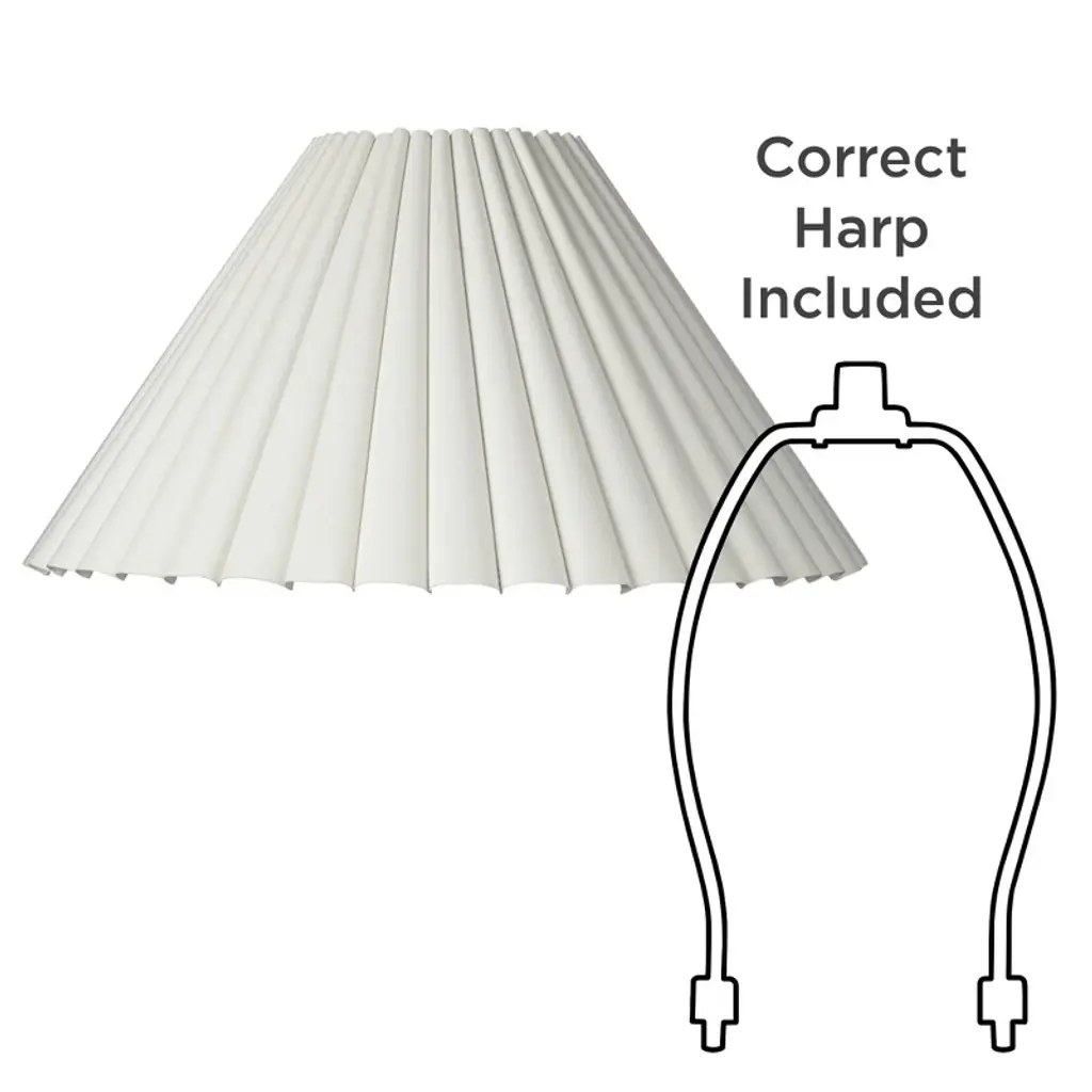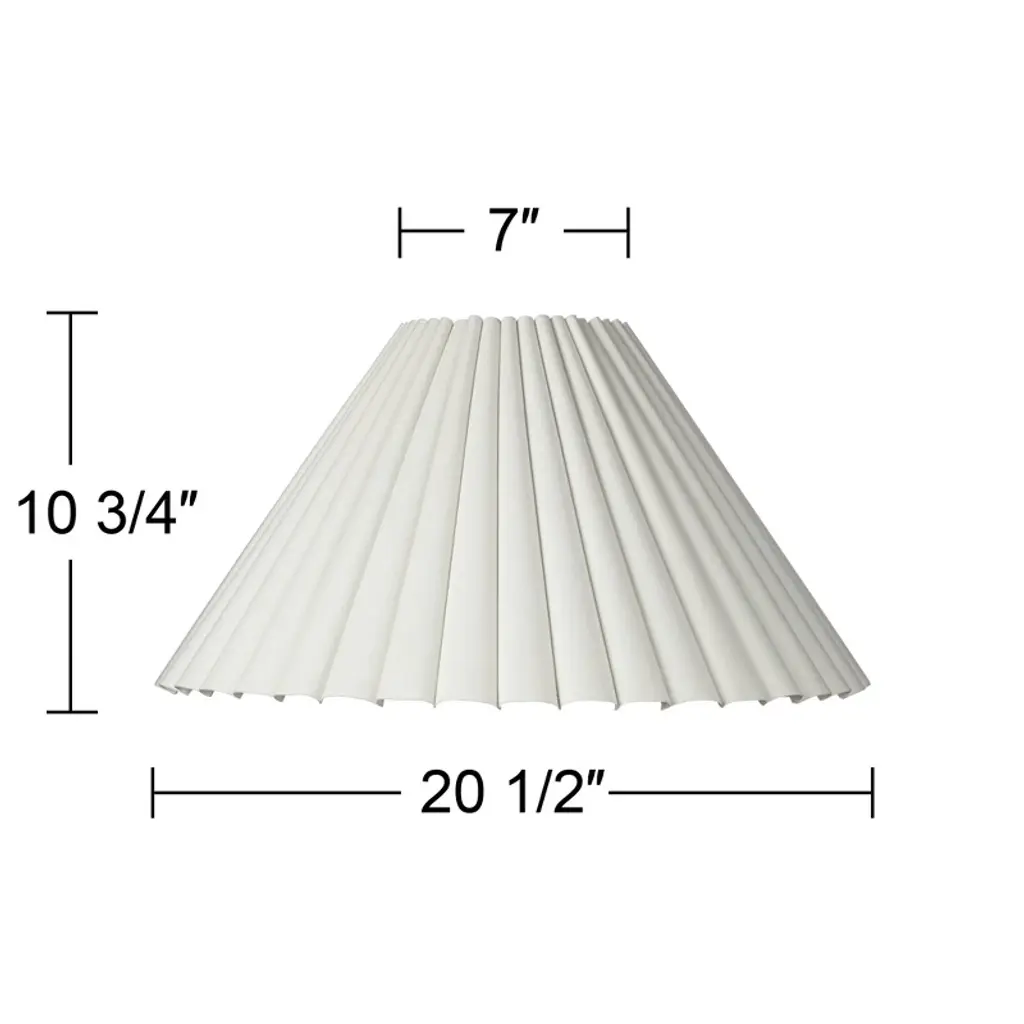This eye-catching lamp shade features large cut, wide box pleats. The pleated shade design is suitable for a floor lamp or table lamp and has a classic modern look about it. The fabric is an antique white color tone in a cotton-poly blend. A wonderful look from the Springcrest Collection.